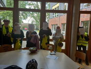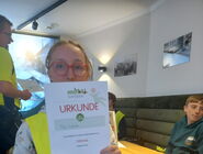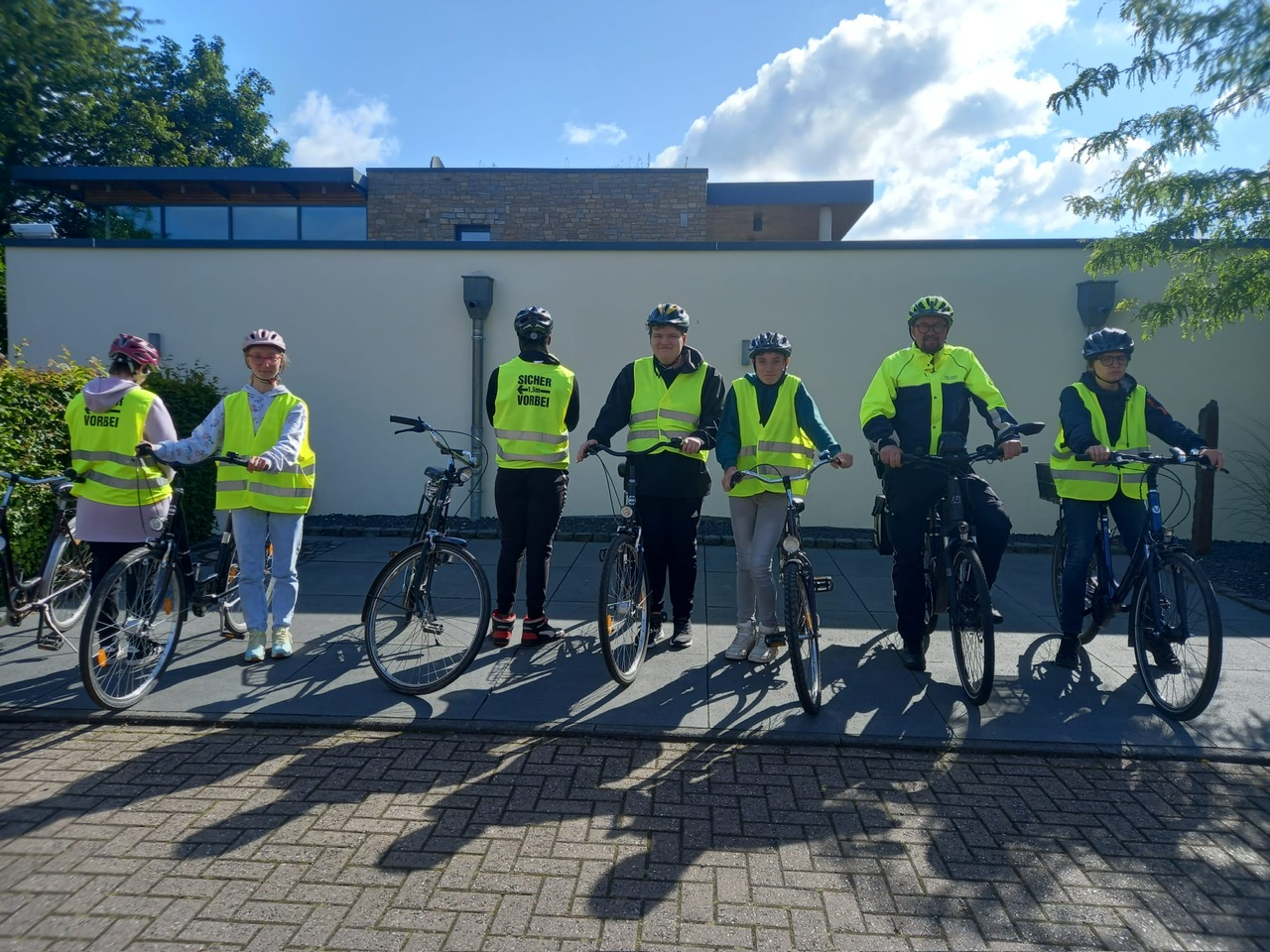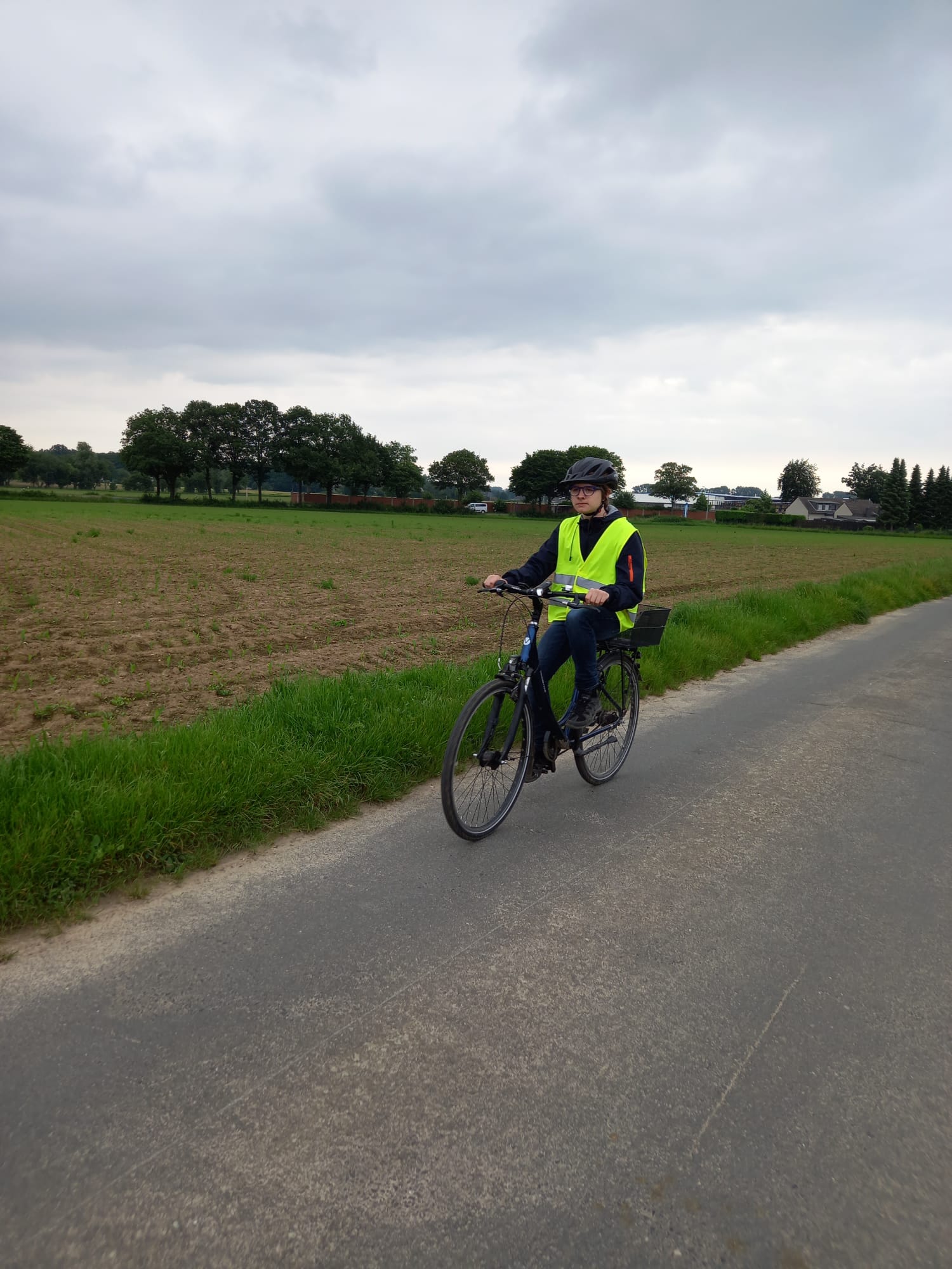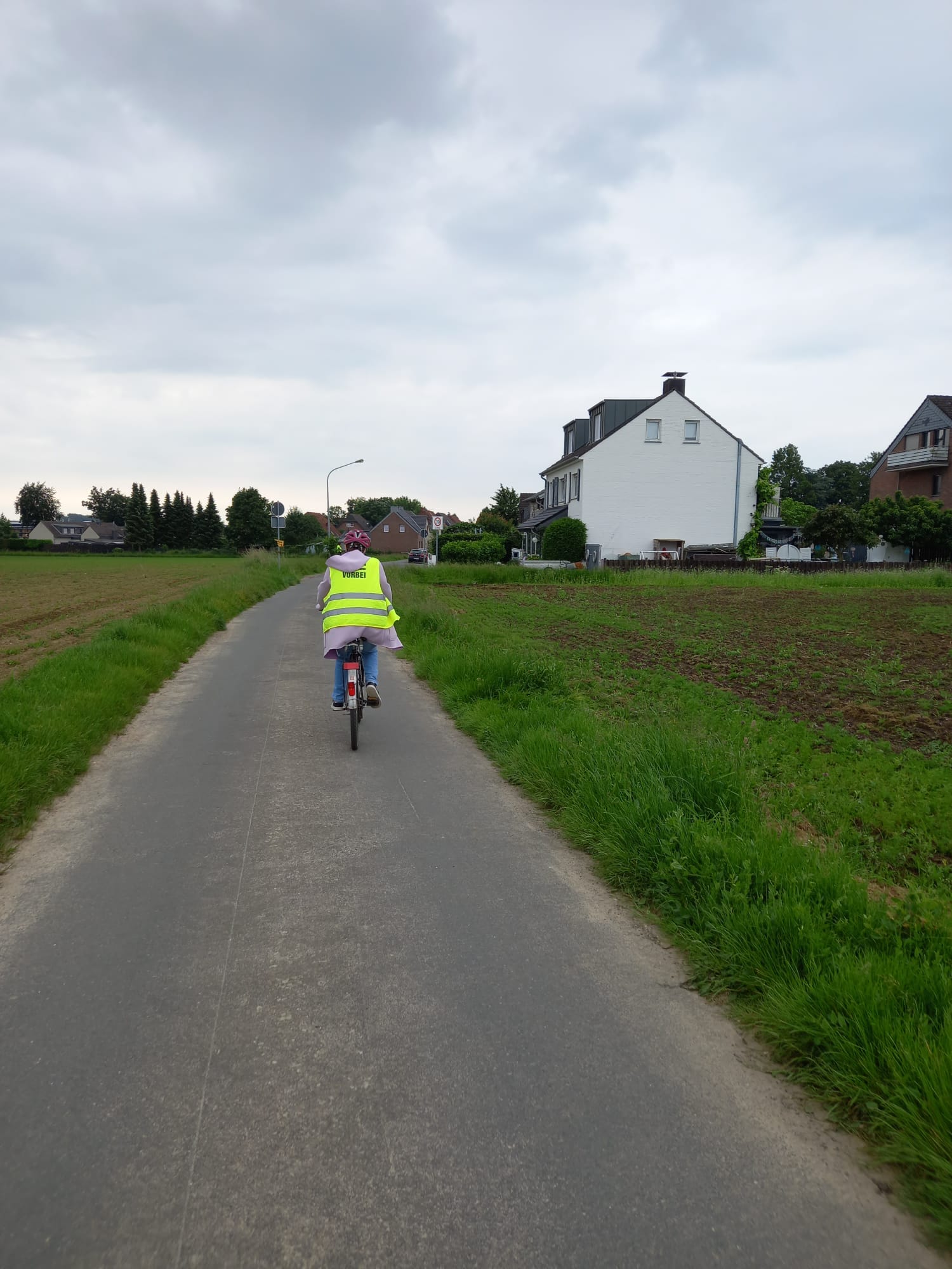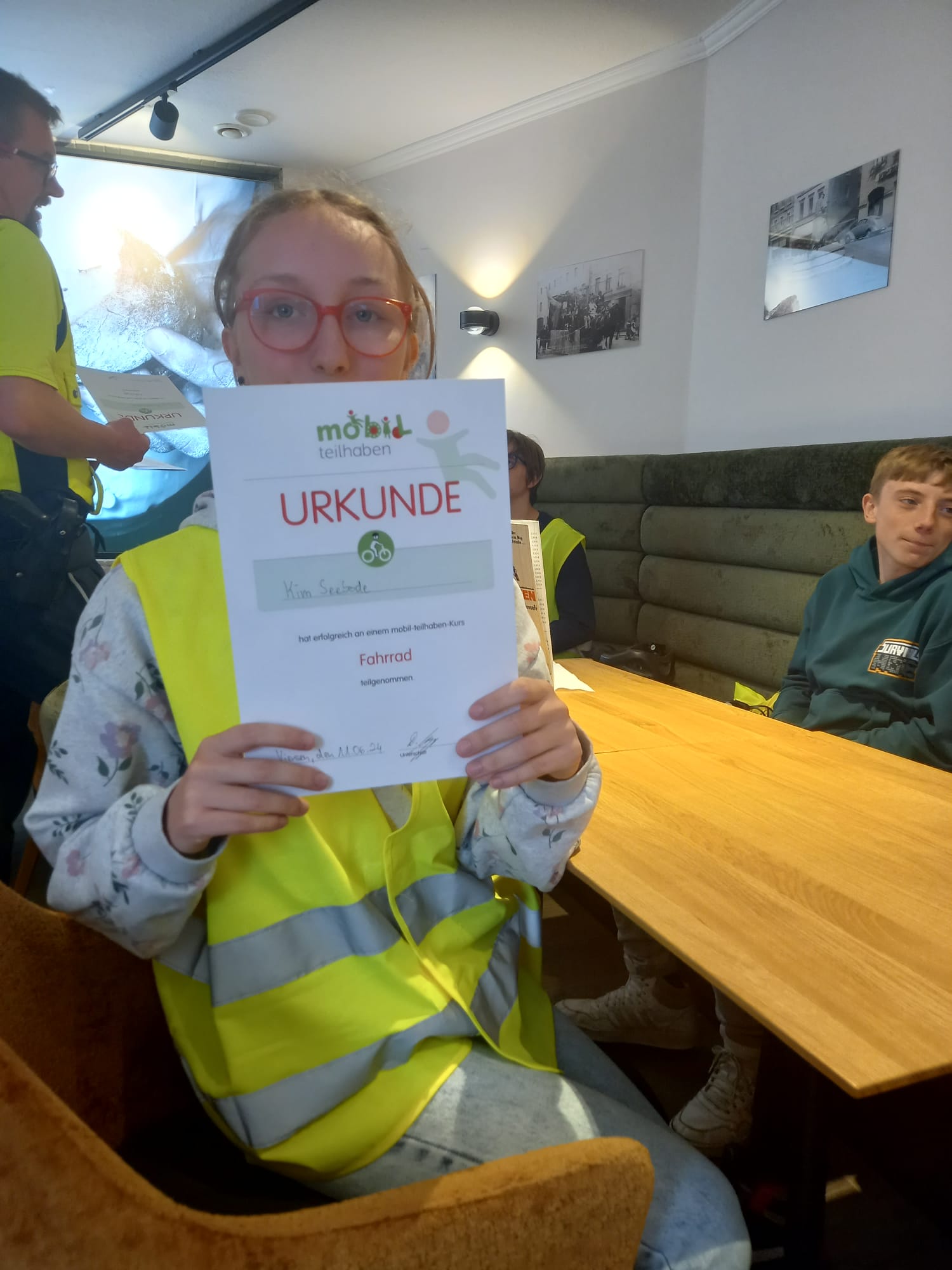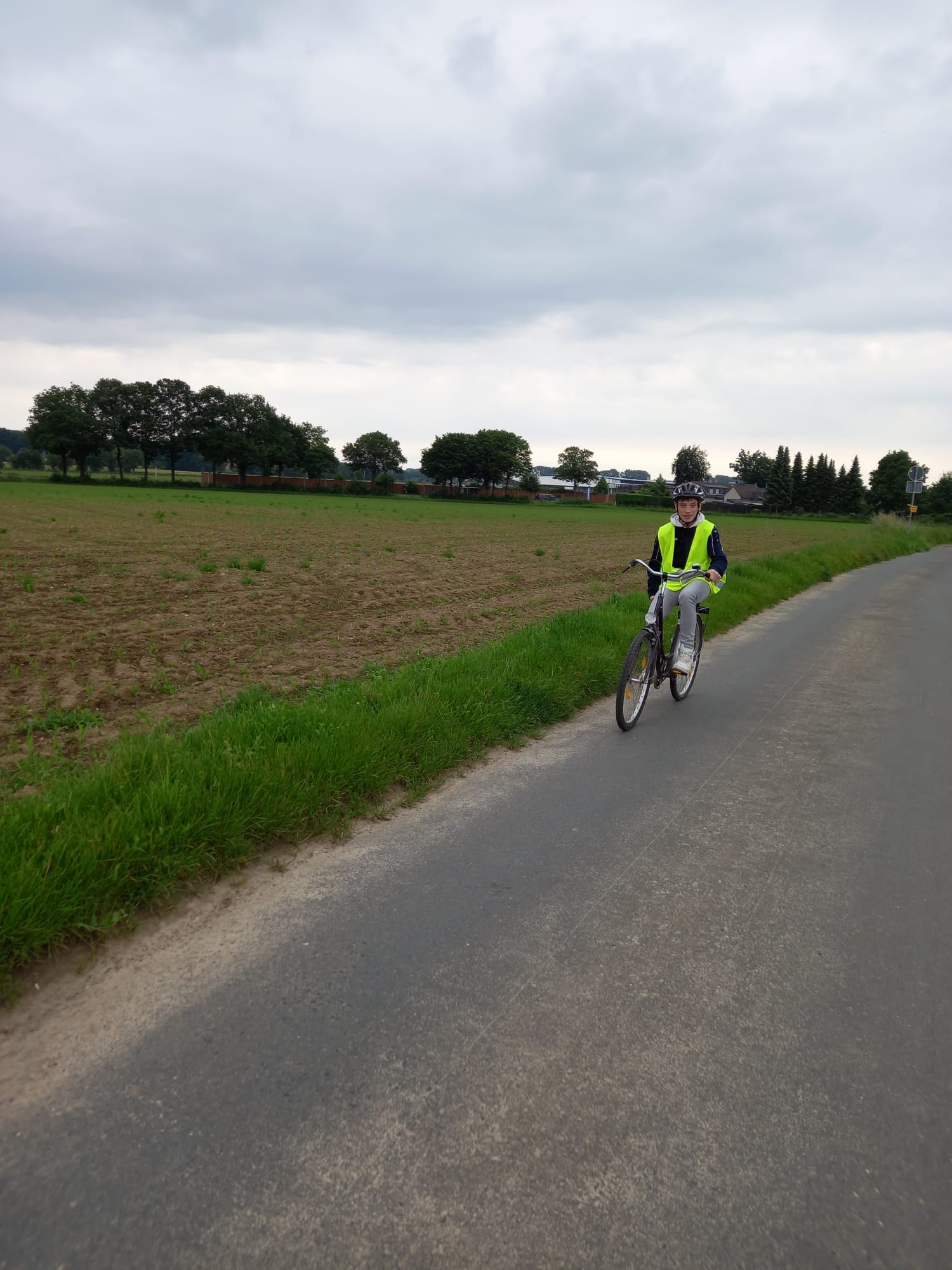 Es hat richtig Spaß gemacht. Wir haben Handzeichen gegeben. Wir haben das Anfahren geübt. Schwer ist das über die Schulter schauen und den Abstand halten. Der Polizist hat mit uns geübt. Er kam mit einem LKW. Hat uns den toten Winkel gezeigt. Wir sind vom Fahrrad abgestiegen und haben das Fahrrad geschoben an einer Schule vorbei. Und wir hatten eine Fahrradprüfung und wir haben eine Urkunde.