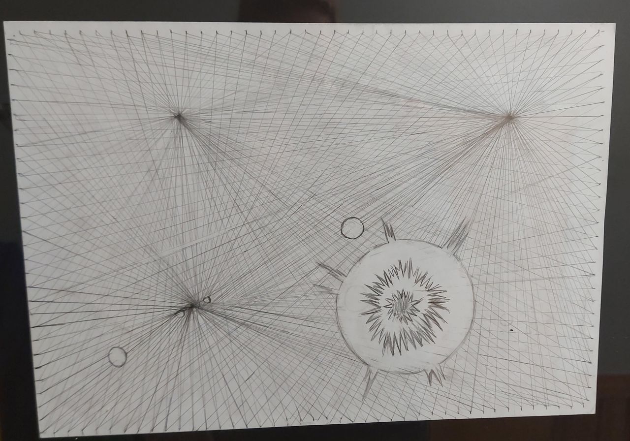 wenn man das machen möchte braucht man dafür ein Lineal und ein bis zwei Kreuze auf dem Blatt. Wenn man möchte kann man dann verschiedene Formen rein machen. Außen an den Rändern kommen noch Striche hin und mit einem gleichmäßigen Abstand. Dann die Striche mit dem Lineal zum Kreuz hin verbinden.