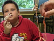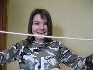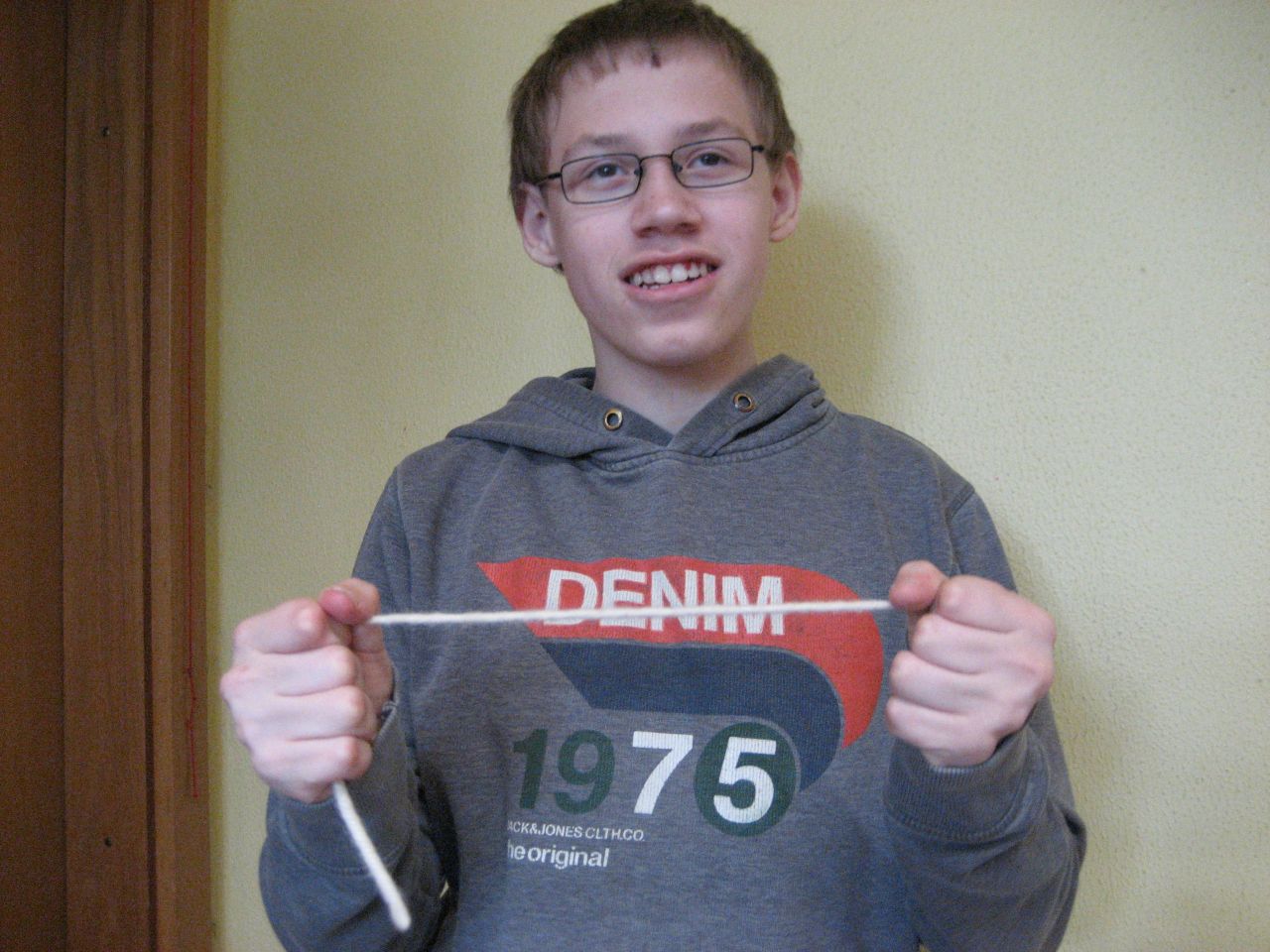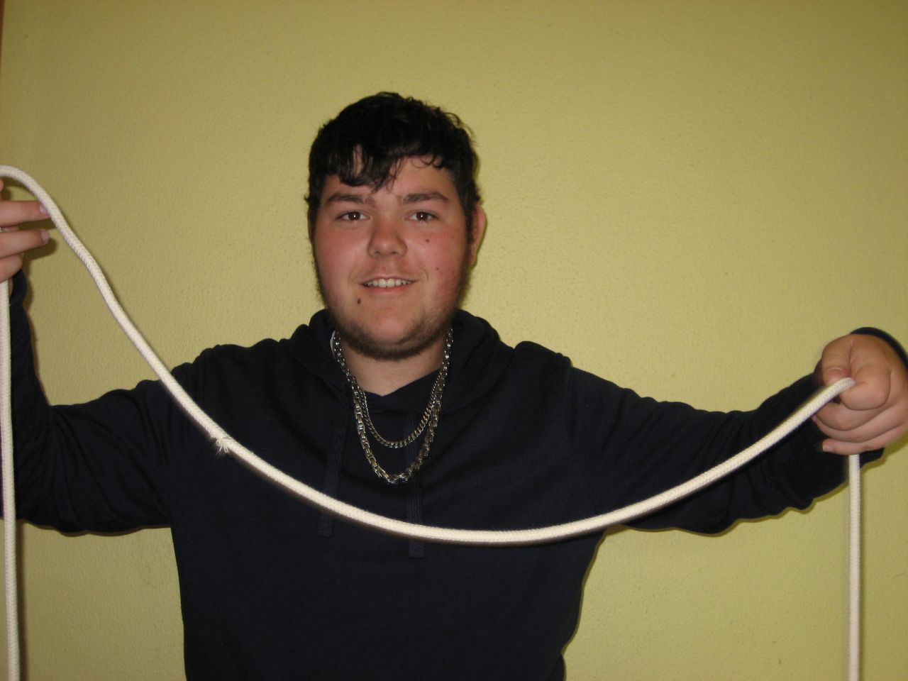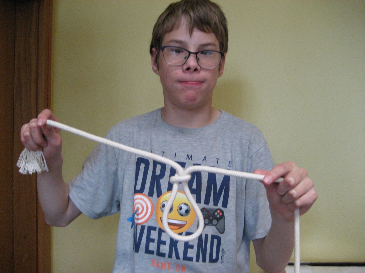 Wir haben einen Zaubertrick gelernt und können jetzt Knoten ganz wie von selbst öffnen. Unsere Lehrerin haben wir deshalb vorübergehend Frau „Simsalabim“ getauft.