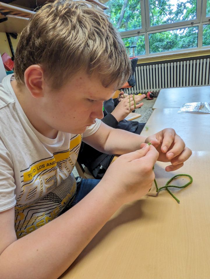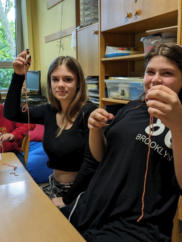 Dann wurde es kniffelig: Wir haben aus dünnen Fäden weiter gezaubert und viele Schlaufen gemacht.