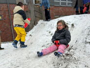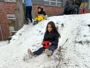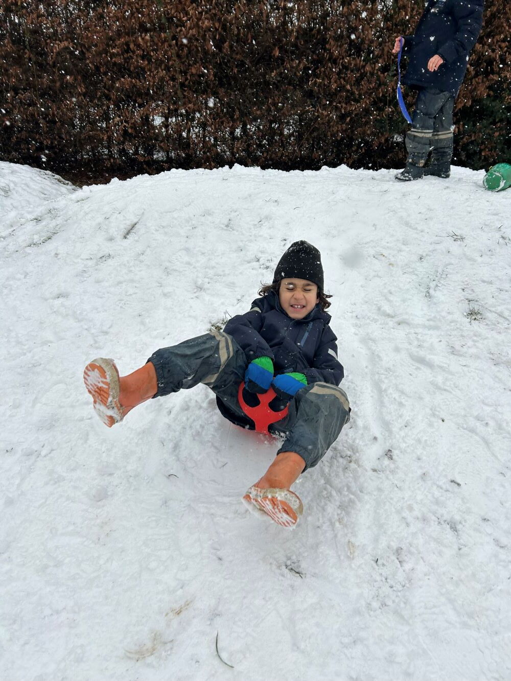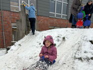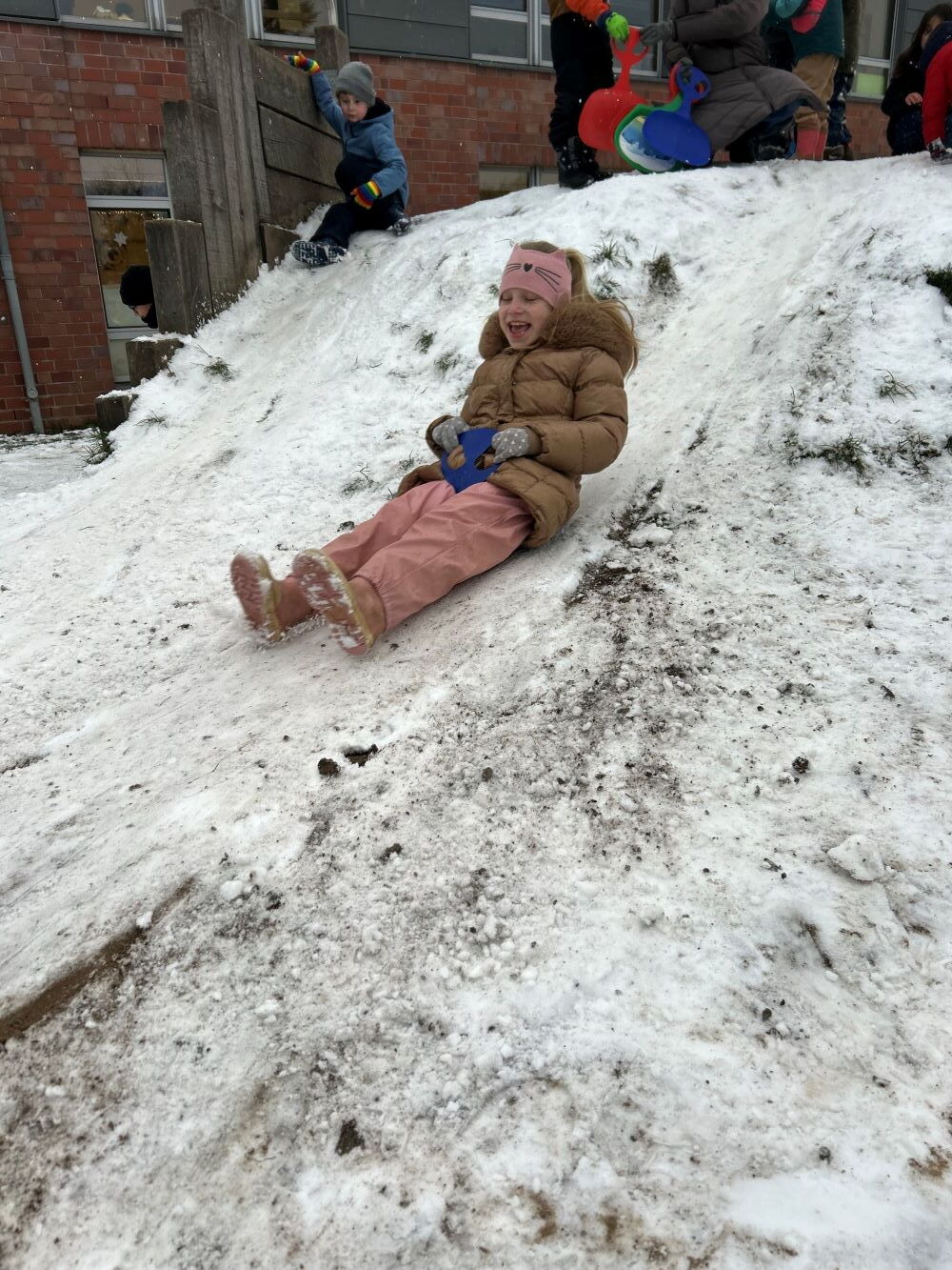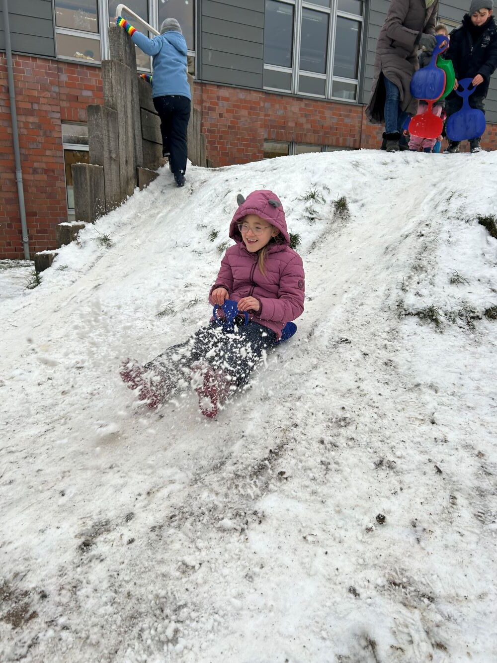 Zu Beginn des neuen Jahres, überraschte das Wetter mit viel Schnee. In der Pause hatten die Schüler*innen viel Spaß, bauten Schneemänner und rutschten auf Rutschtellern den Hügel hinunter.
