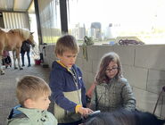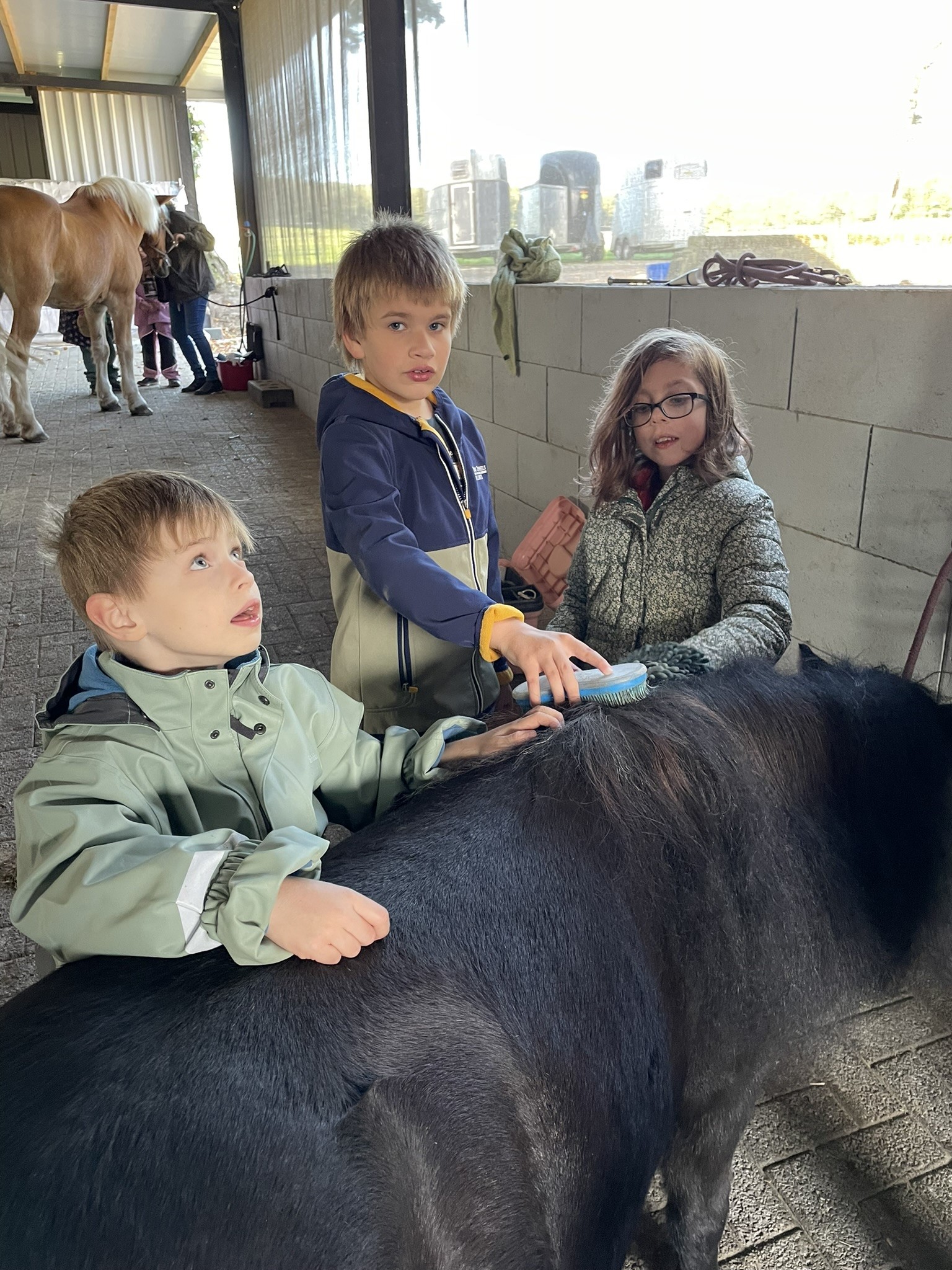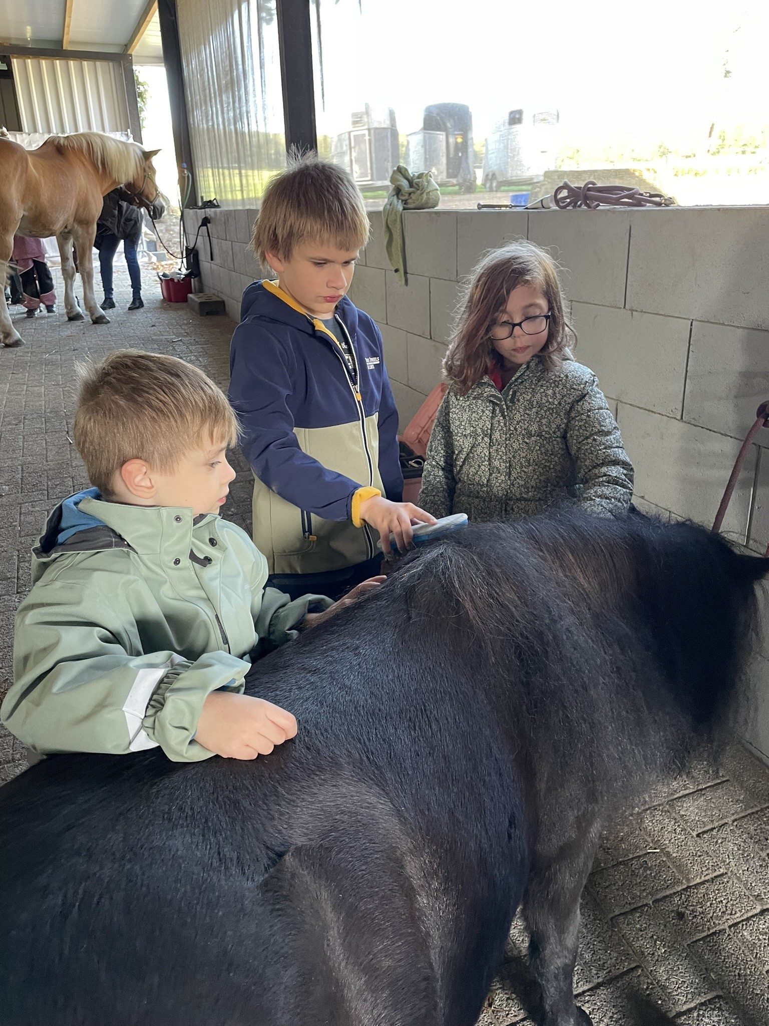 Das Fell und die Mähne müssen gebürstet werden. Danach reinigen wir Lottas Hufe.