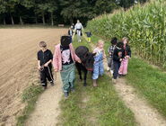 Bevor wir unseren Spaziergang in den nahegelegenen Wald starten, müssen wir noch den Putzplatz kehren. Dann geht es los!