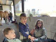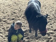 An Lottas Halfter befestigen wir auf jeder Seite einen Führstrick. So kann Lotta von uns Kindern beim Spaziergang geführt werden.