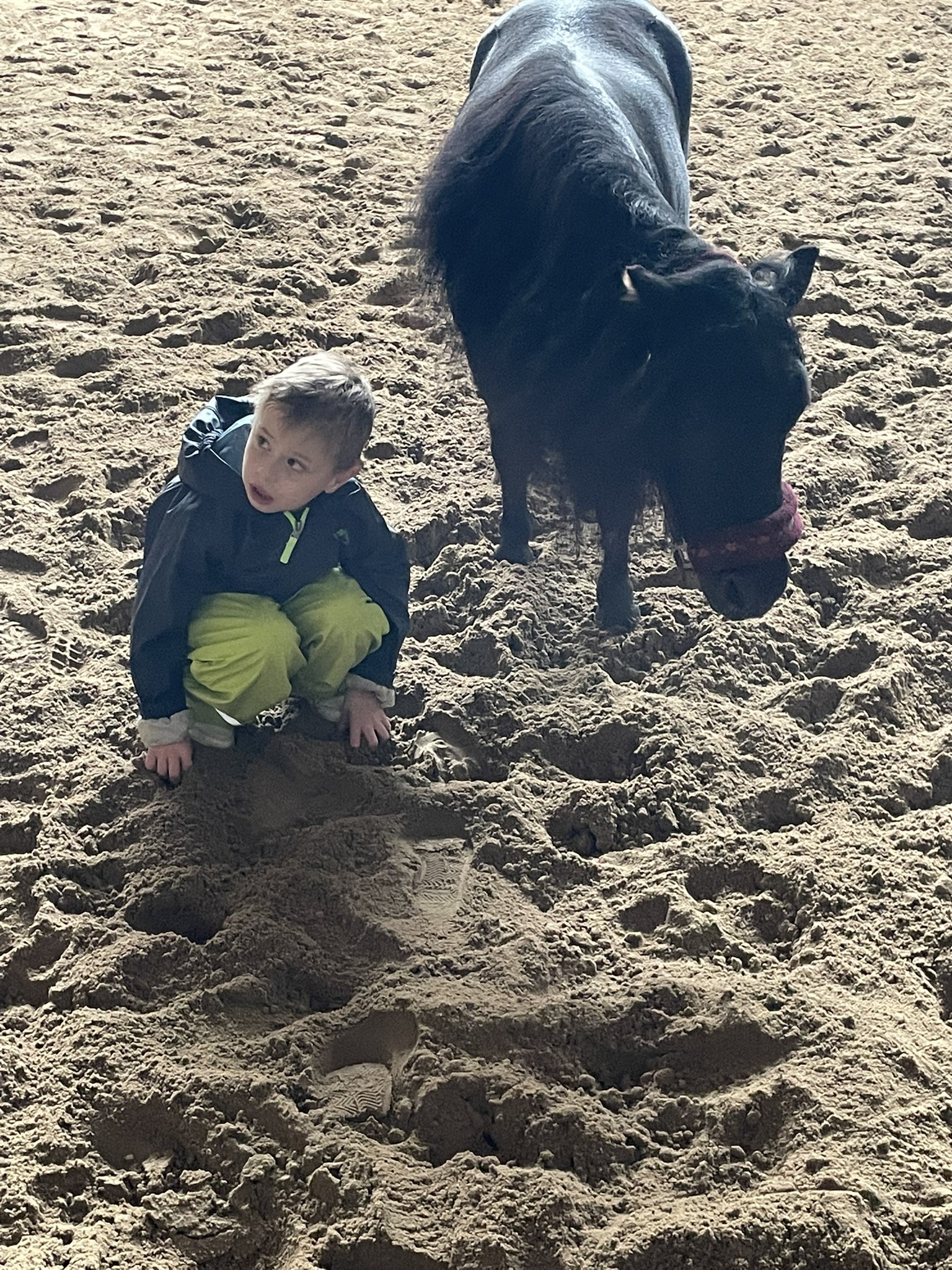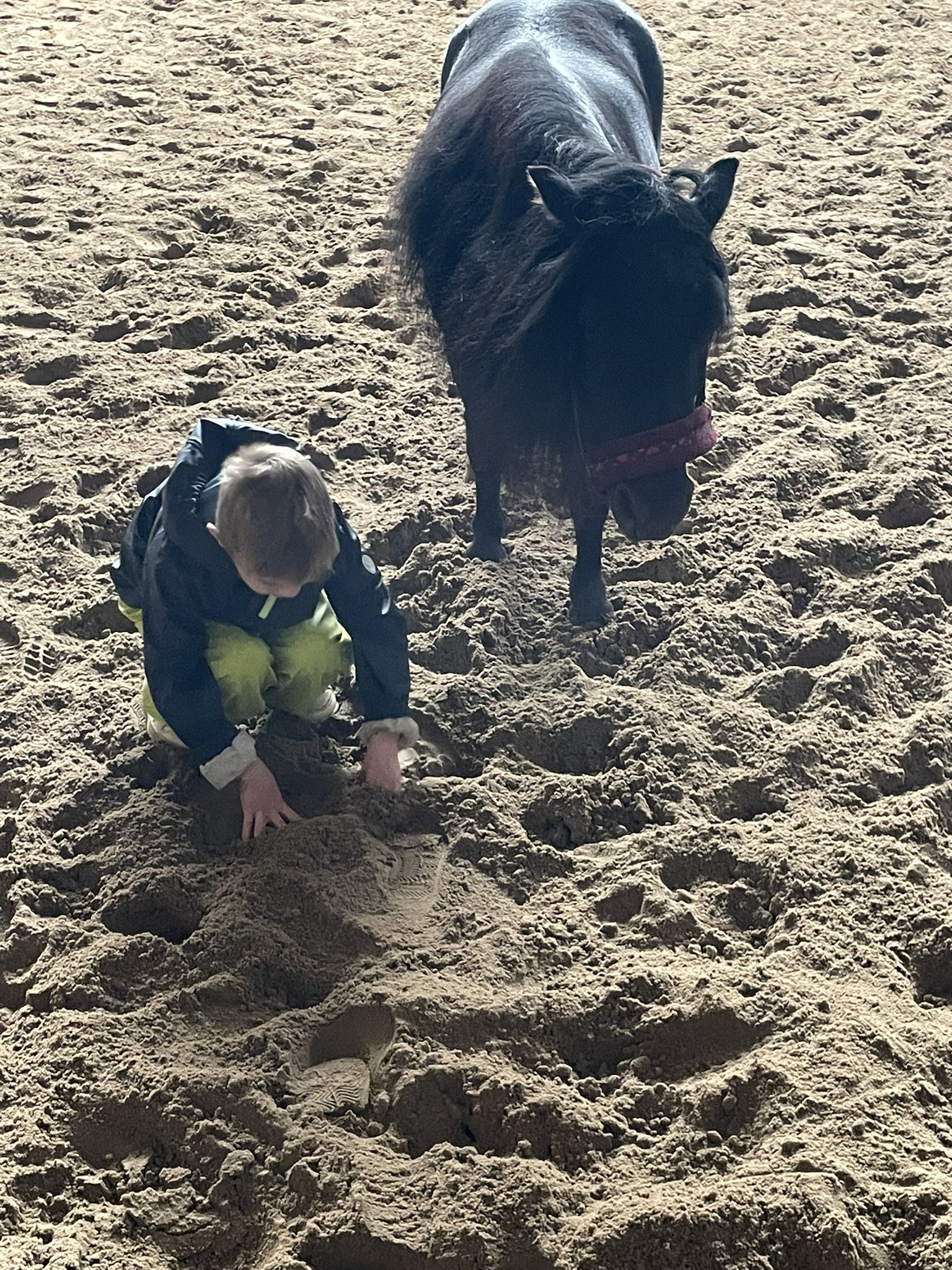 Wenn es regnet gehen wir in die Reithalle. Dort haben wir schon gesehen, wie schnell Lotta alleine galoppieren kann.