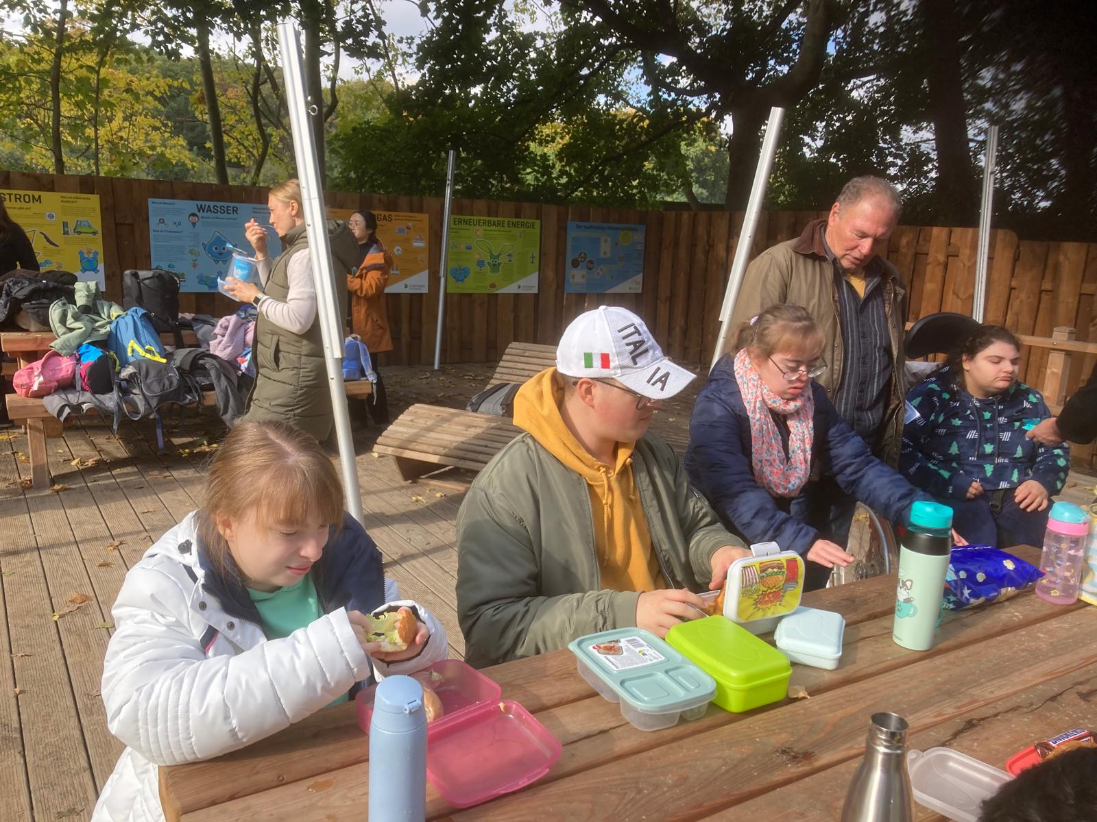 Zum Abschluss der Aktionswoche haben wir uns im Forum getroffen. Dort haben wir das Ernte-Dank-Frühstück durchgeführt. Gesprochen haben wir über Essen und Trinken. Beide Sachen sind sehr wichtig und wir sind dankbar, dass wir alle genug haben. Danach ging es für alle in die Herbstferien.