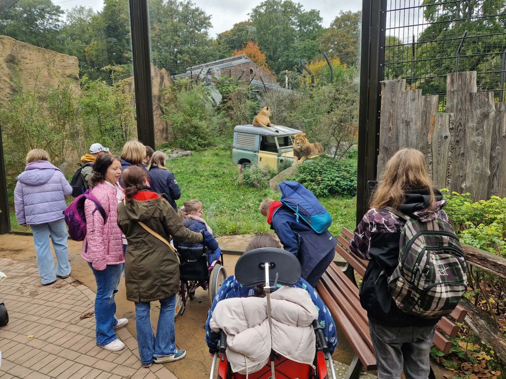 Dort haben wir Flamingos, Delfine, Löwen, Gorilla, Elefanten, Koalas und viele andere Tiere gesehen. In der Delfinshow haben die Delfine Saltos gemacht. Die Leute in der ersten Reihe sind nass geworden. Die Delfintrainer haben gesagt, man soll leise sein.