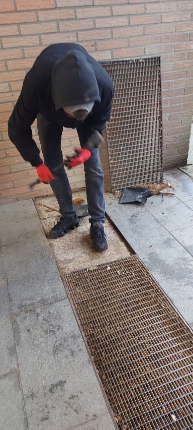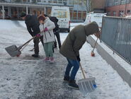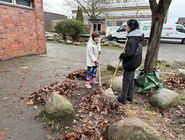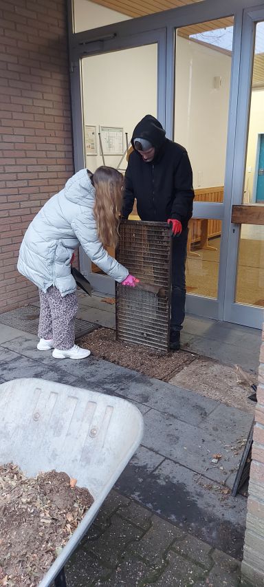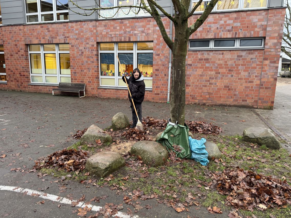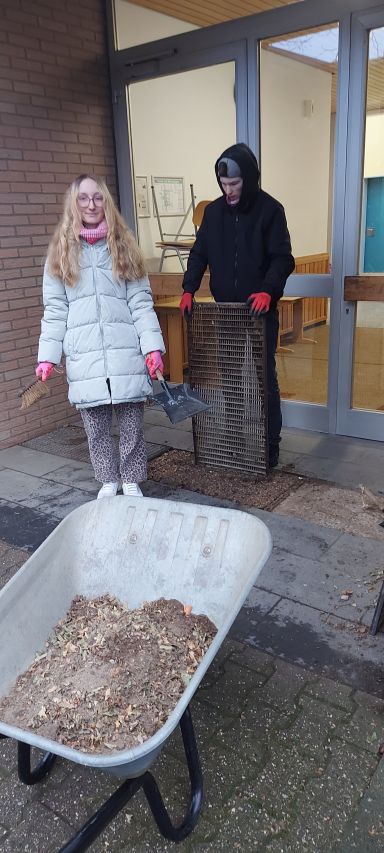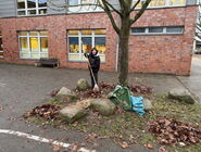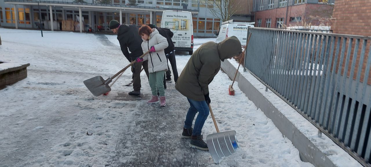Die Arbeitslehre "Garten" ist bei Wind und Wetter draußen. Jetzt im Winter müssen wir Schnee schieben, Blätter wegfegen oder die Schmutzfanggitter reinigen.