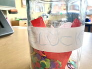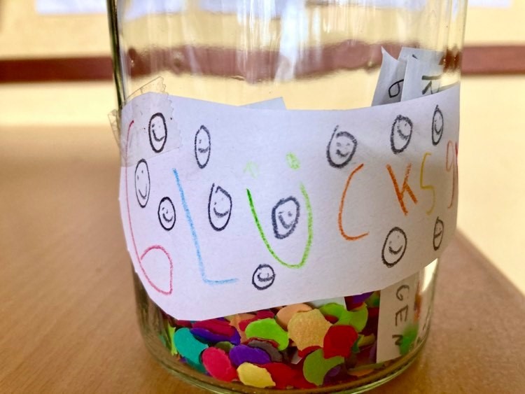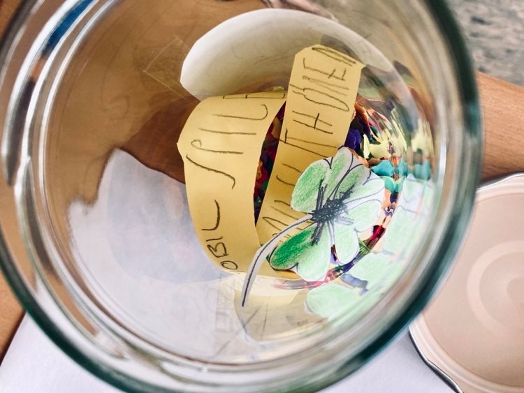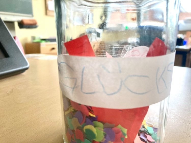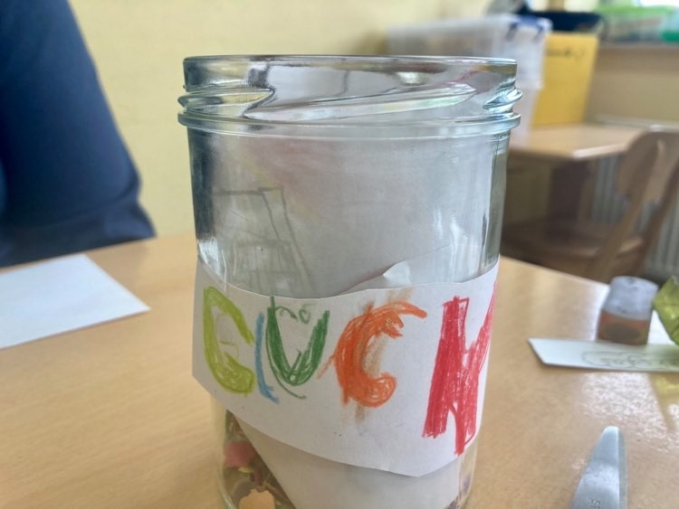 Wir haben ein Glücksglas gemacht.