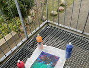Zuerst haben wir Berge mit Bleistift gemalt. Dann haben wir die Berge mit Acrylfarbe bunt gemalt.
