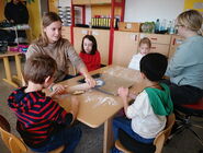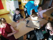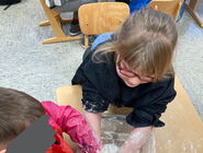 Bald ist Weihnachten. Wir haben unsere Klasse weihnachtlich dekoriert und im Musikunterricht Weihnachtslieder gesungen. Außerdem haben wir selber Schnee aus Rasierschaum und Stärke hergestellt, das hat viel Spaß gemacht und war eine große Sauerei.