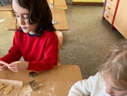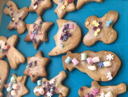 Wir haben auch noch Plätzchen gebacken. Nach dem Ausstechen haben wir sie in der Küche gebacken und anschließend dekoriert. Sie schmecken sehr lecker!