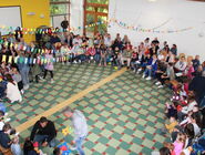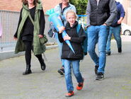 Gemeinsam mit den Klassen der Eingangsstufe begrüßten Herr Leven, Frau Tanz und Frau Henkel die neuen Kinder. Es wurde gesungen und begrüßt!