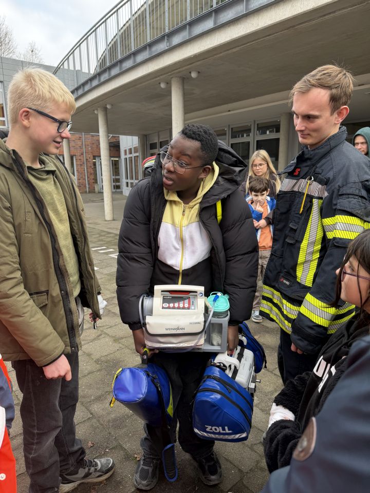"Wir, die ES1, hatten im Sachunterricht das Thema Erste Hilfe. Ein Rettungswagen mit zwei Rettungssanitätern und einem Feuerwehrmann kamen zu Besuch. Es gab viel zu entdecken und zu lernen. Es war ein toller Tag ☺️"