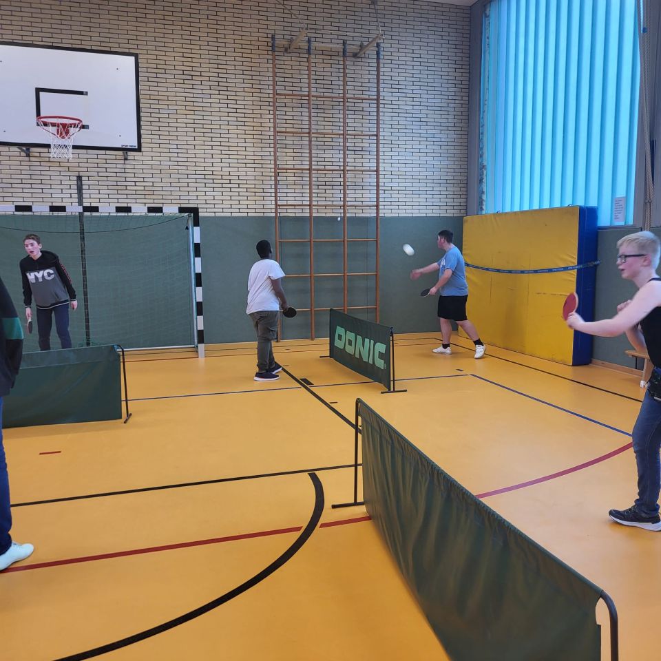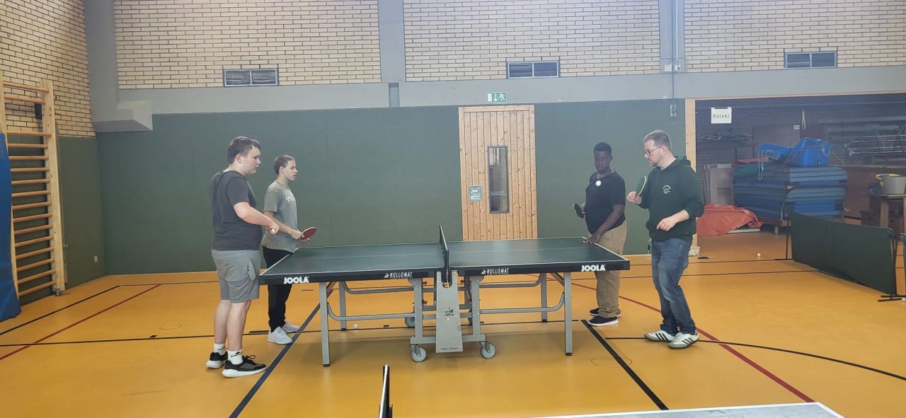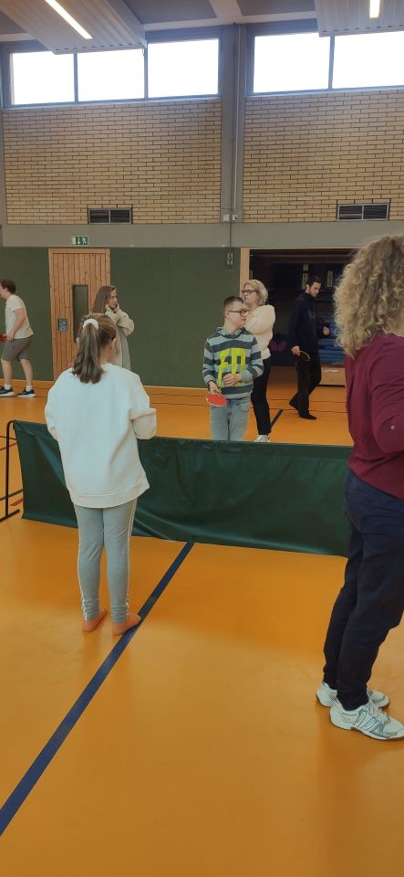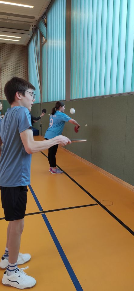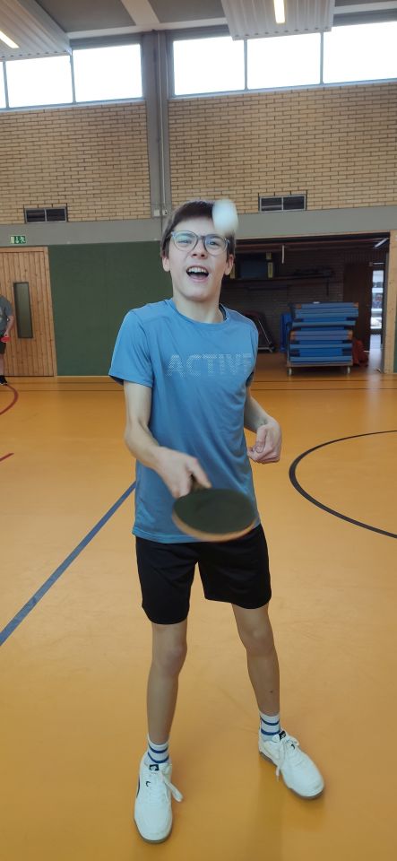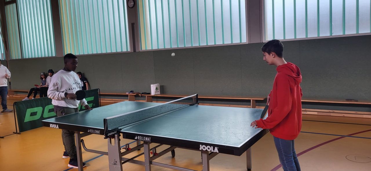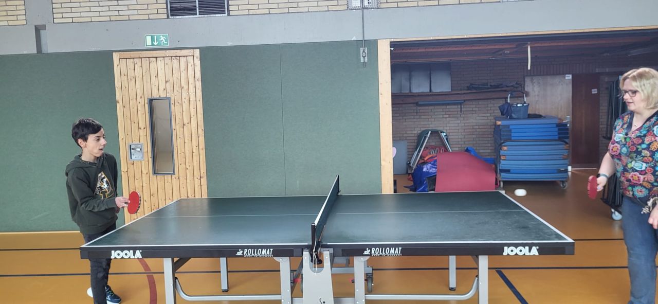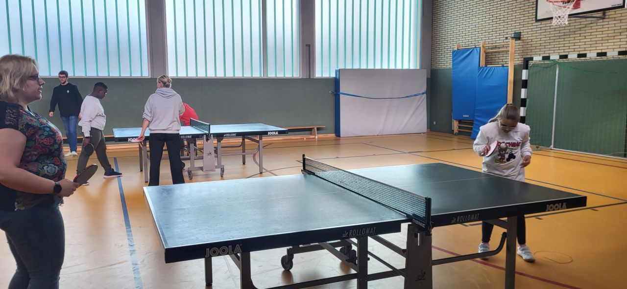 Die ES1 und ES3 haben zusammen Tischtennis gespielt. Hier siehst du uns dabei.