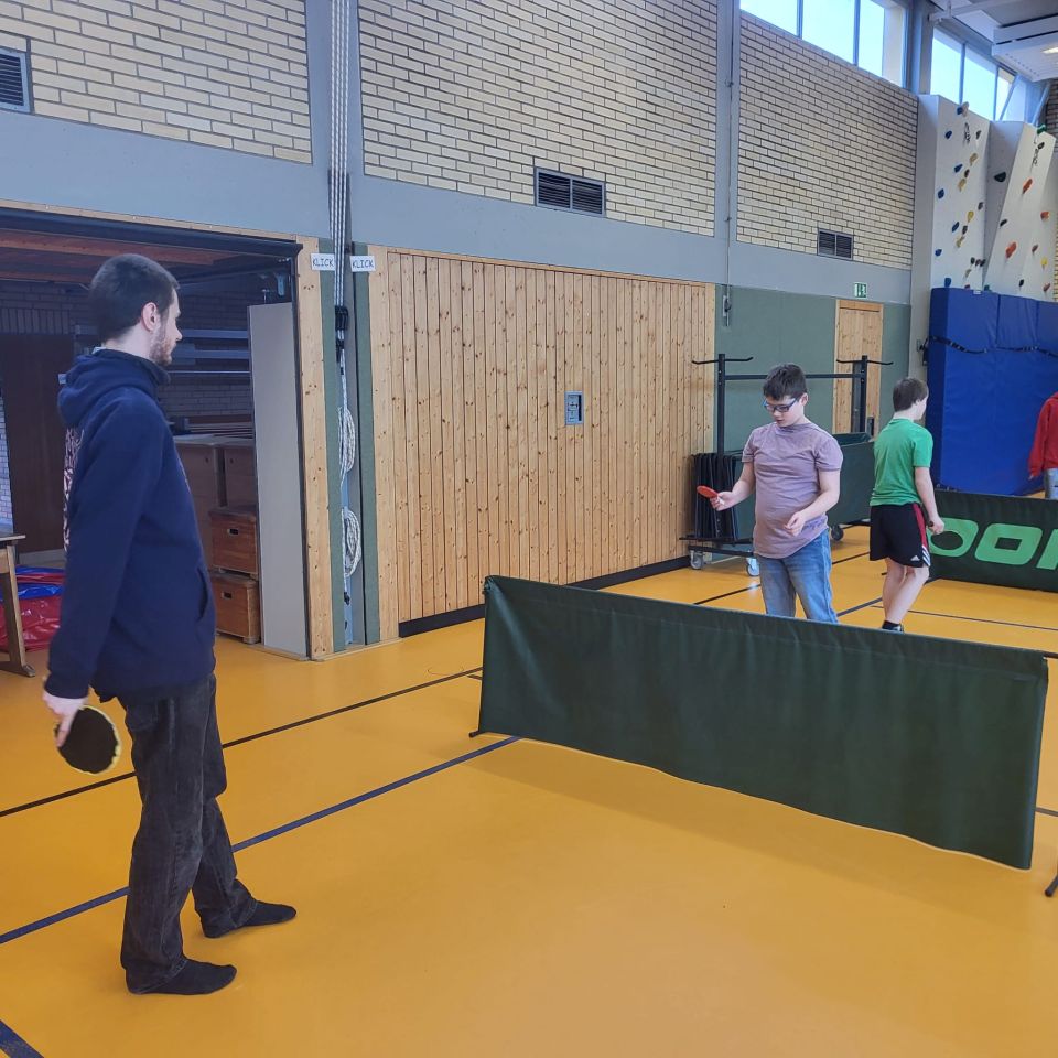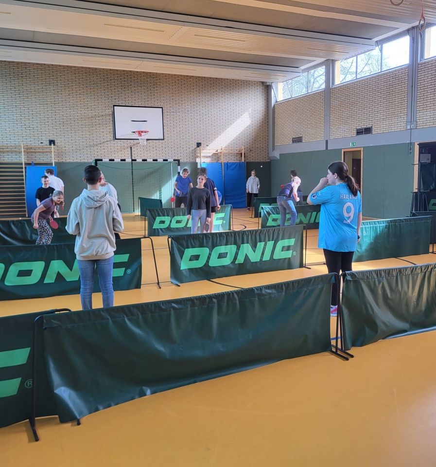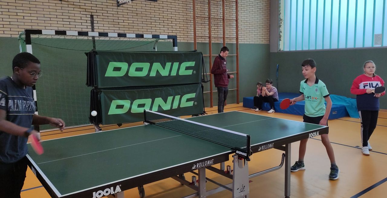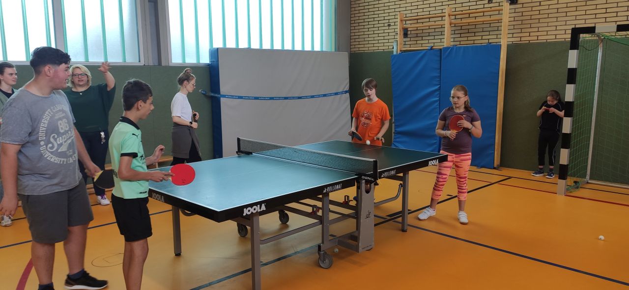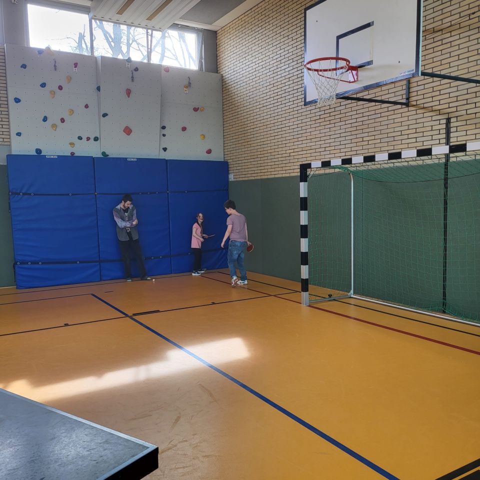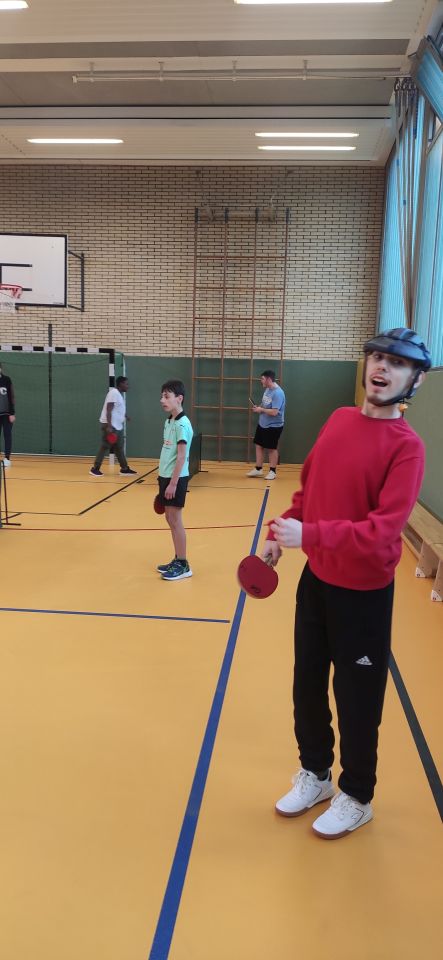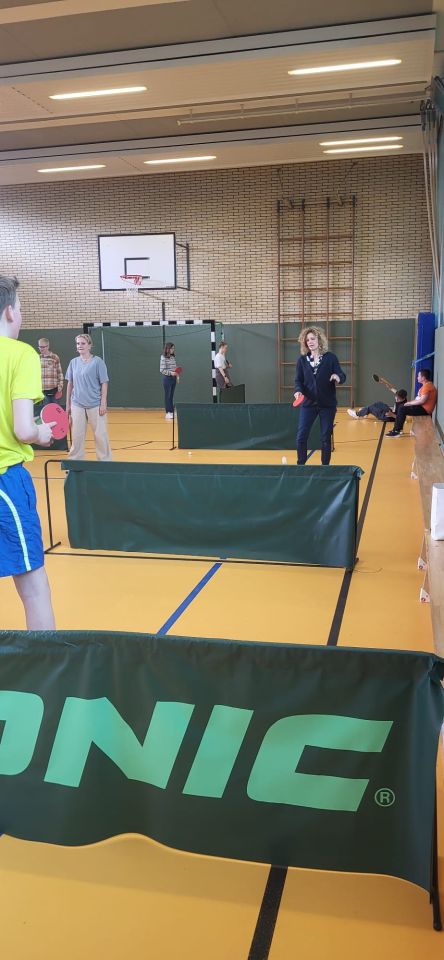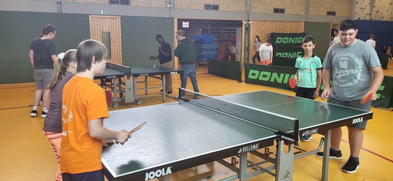 Die ES1 und ES3 haben zusammen Tischtennis gespielt. Hier siehst du uns dabei.