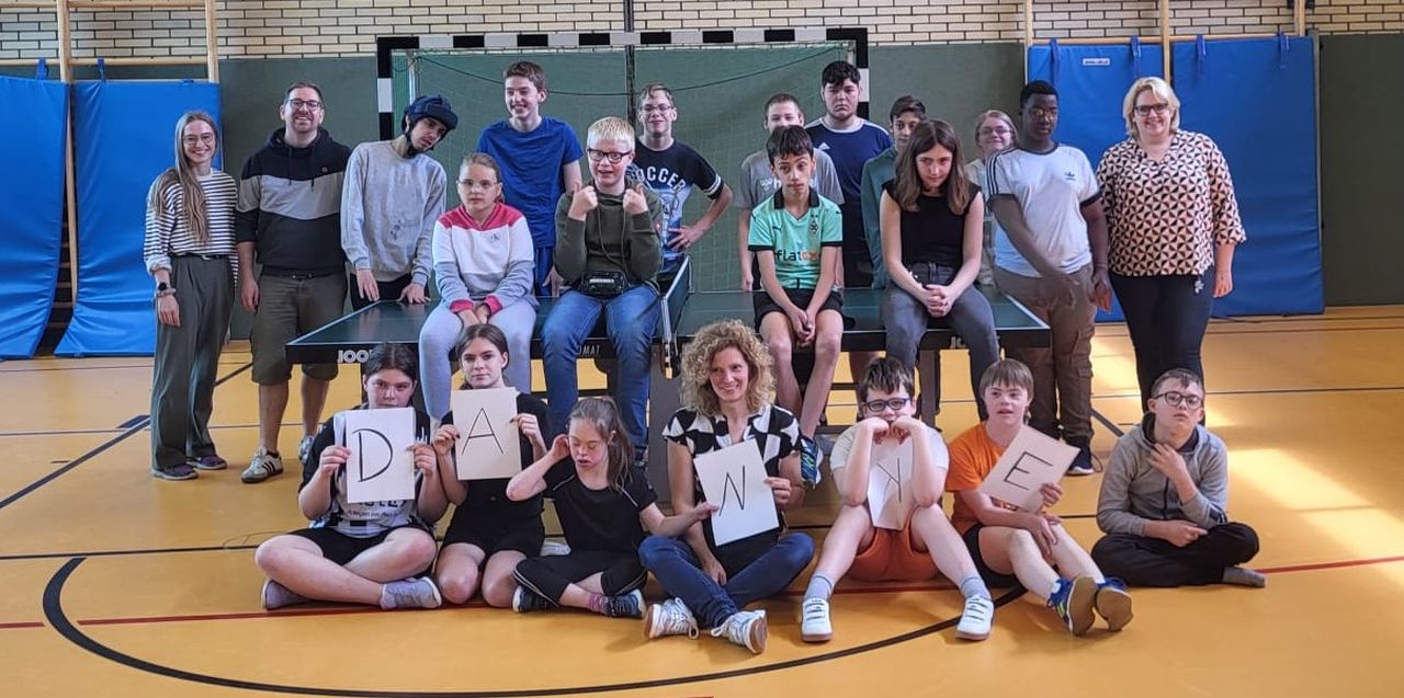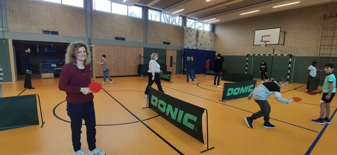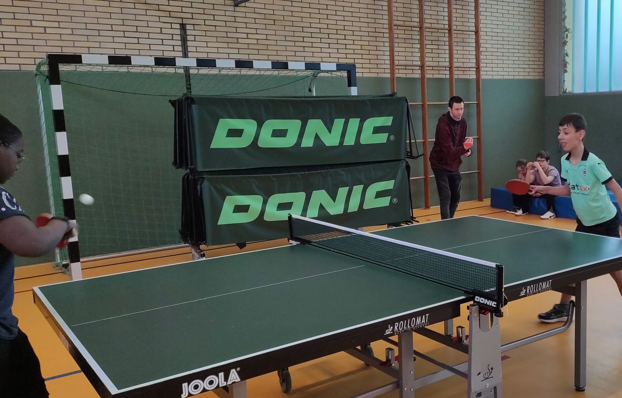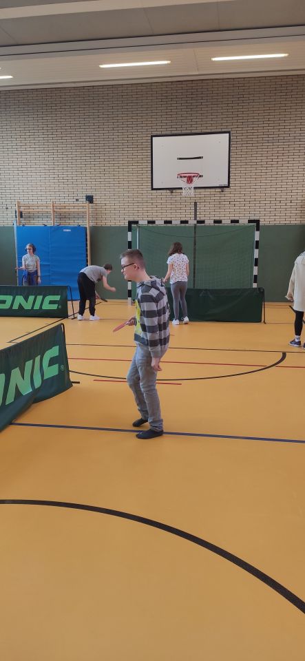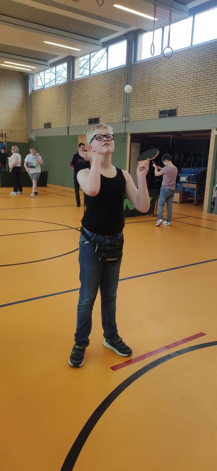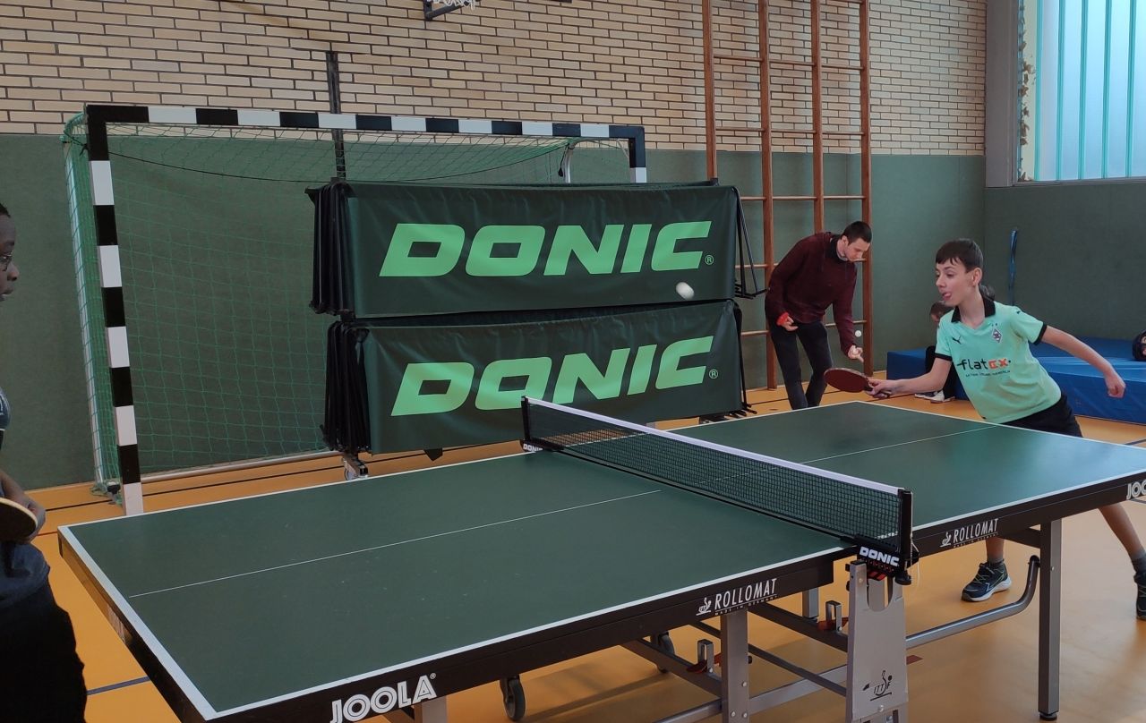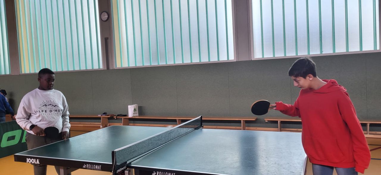 Die ES1 und ES3 haben zusammen Tischtennis gespielt. Hier siehst du uns dabei.