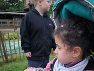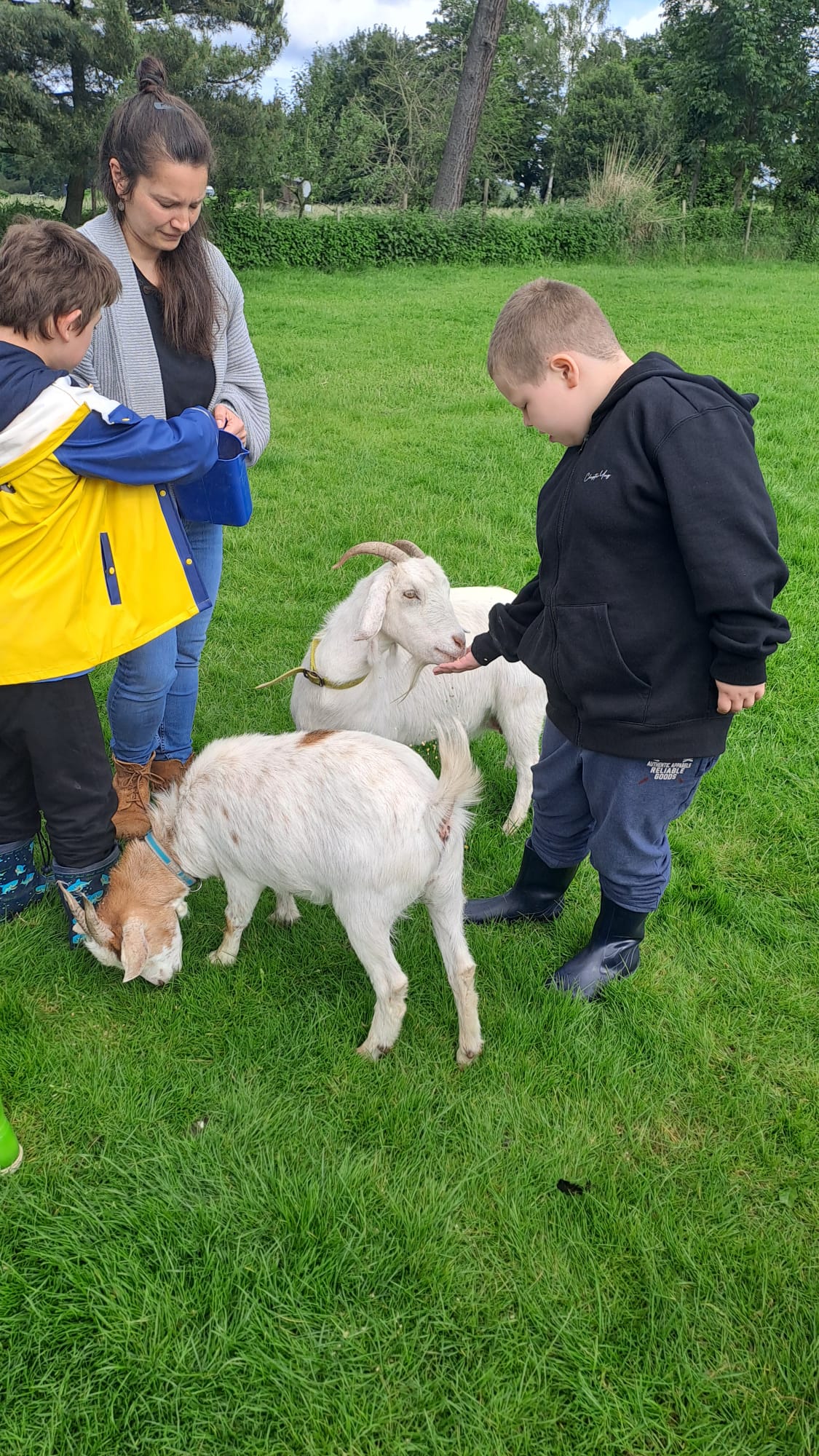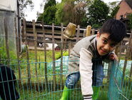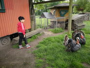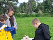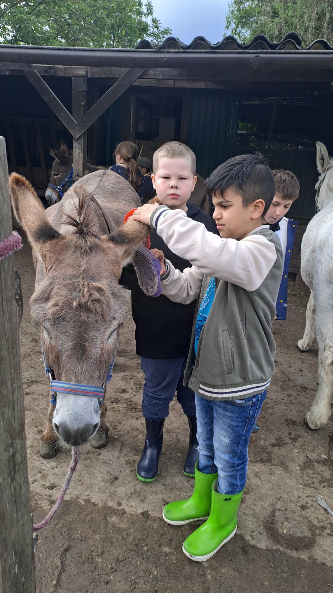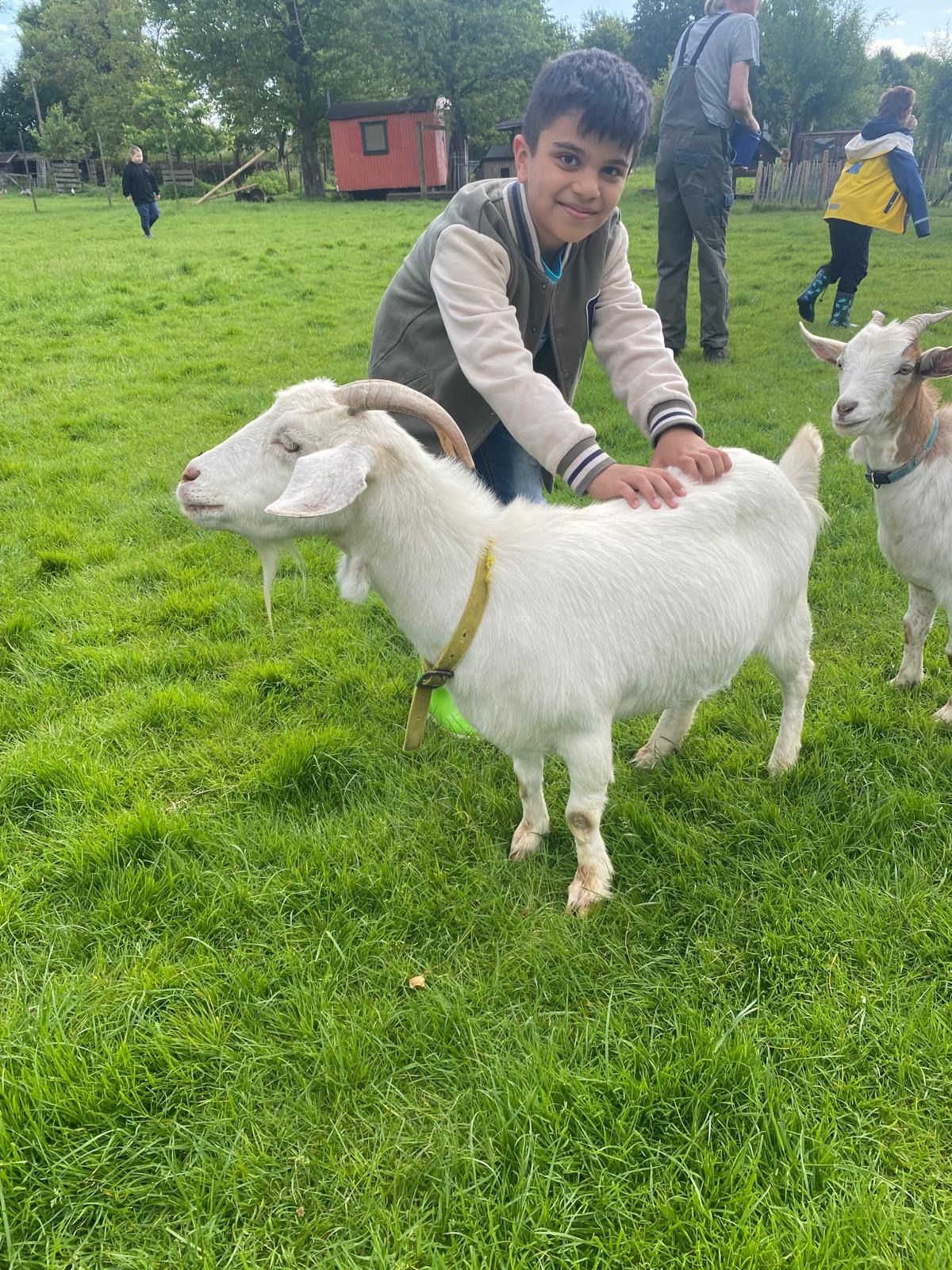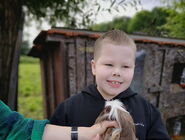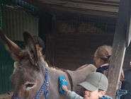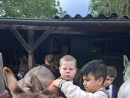 Auf der Wiese vor seinem Haus gab es viele Tiere: Ziegen, Hühner, Truthähne, Meerschweinchen und Hasen, Hunde und natürlich Esel! Gemeinsam haben wir die Tiere mit Kraftfutter und Möhren gefüttert. Die meisten Kinder waren mutig und haben sich aus der Hand fressen lassen und die Tiere ausgiebig gestreichelt. Die Tiere waren alle sehr zahm und durften ausgiebig angefasst und geputzt werden. Vor allem mit Zwergesel Pudding und den Hunden Spike und Emily hatten wir viel Spaß!