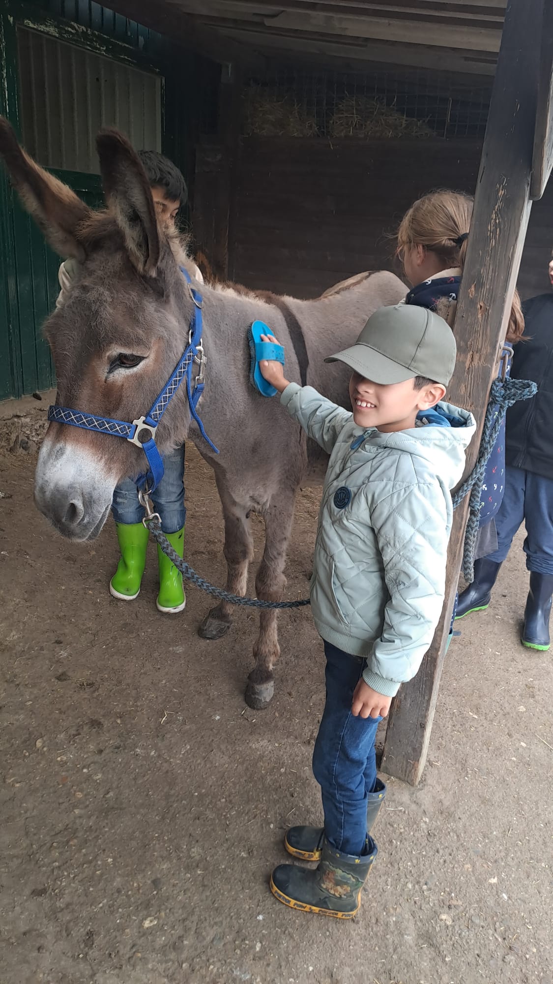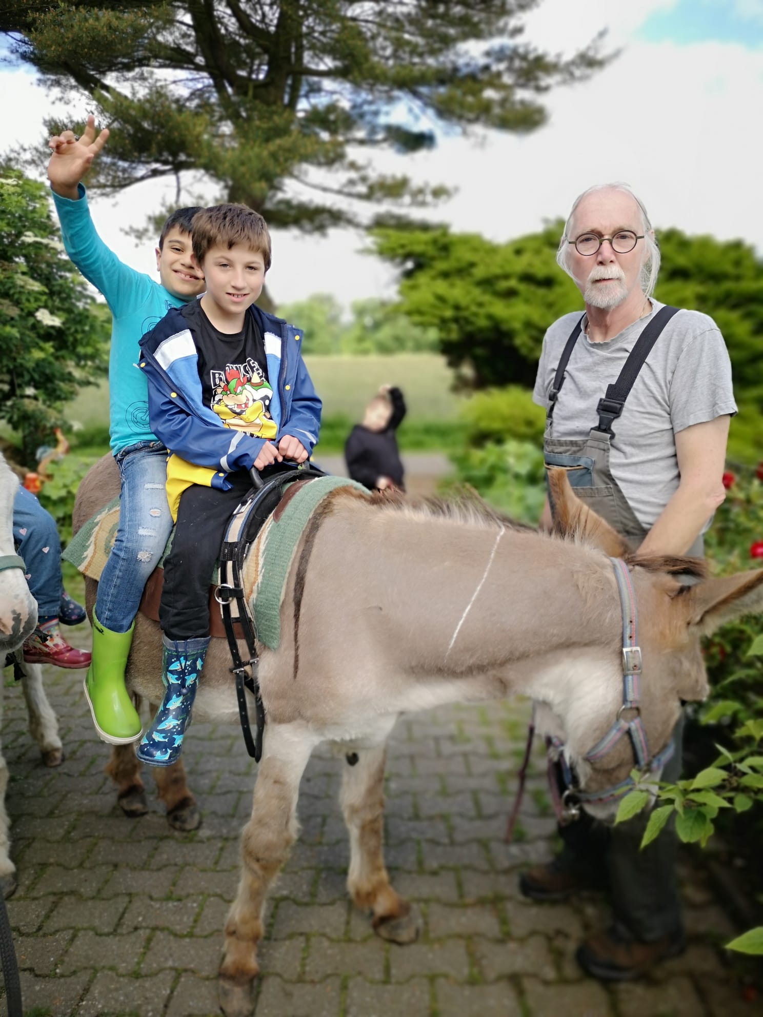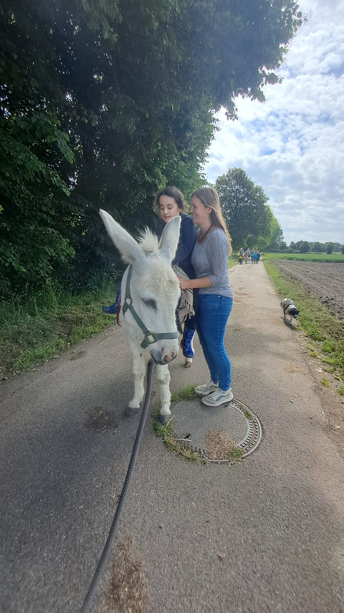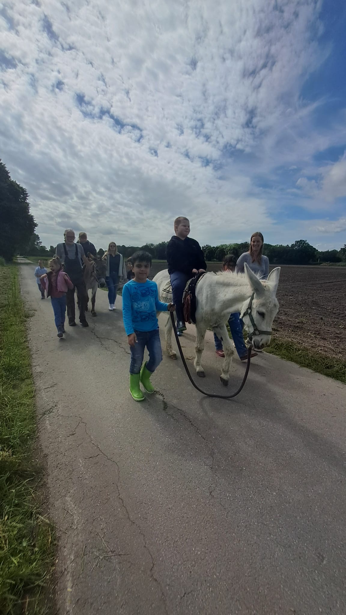 Nach einem gemeinsamen Frühstück war es dann soweit, wir sind gemeinsam mit den Eseln Jolly und Hansi wandern gegangen. Immer zwei Kinder durften dabei auf einem Esel reiten, die anderen Kinder haben sie geführt. Das hat wirklich riesig Spaß gemacht und war ein ganz tolles Gefühl auf dem Eselrücken. Alle Kinder haben sich getraut auf den Eseln zu reiten und waren mächtig stolz. Nach einer großen Runde entlang der Niers ging es wieder nach Hause, wo die Esel wohlverdient auf die Wiese durften und wir müde aber glücklich wieder in die Schule gefahren sind.