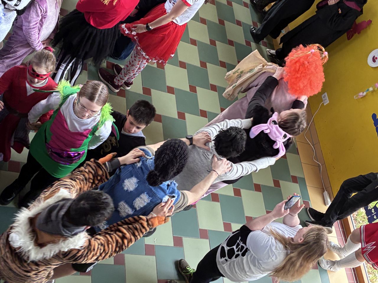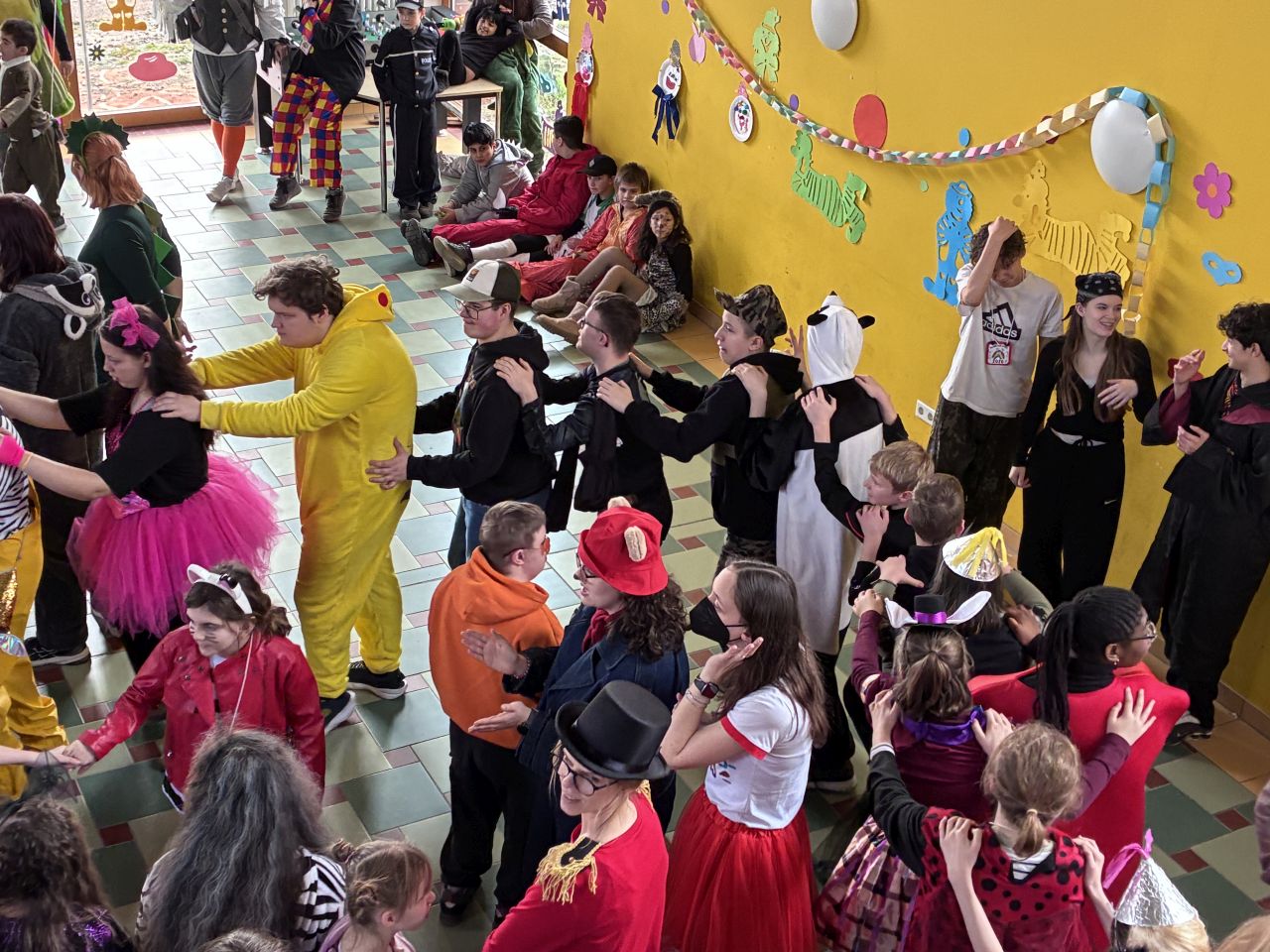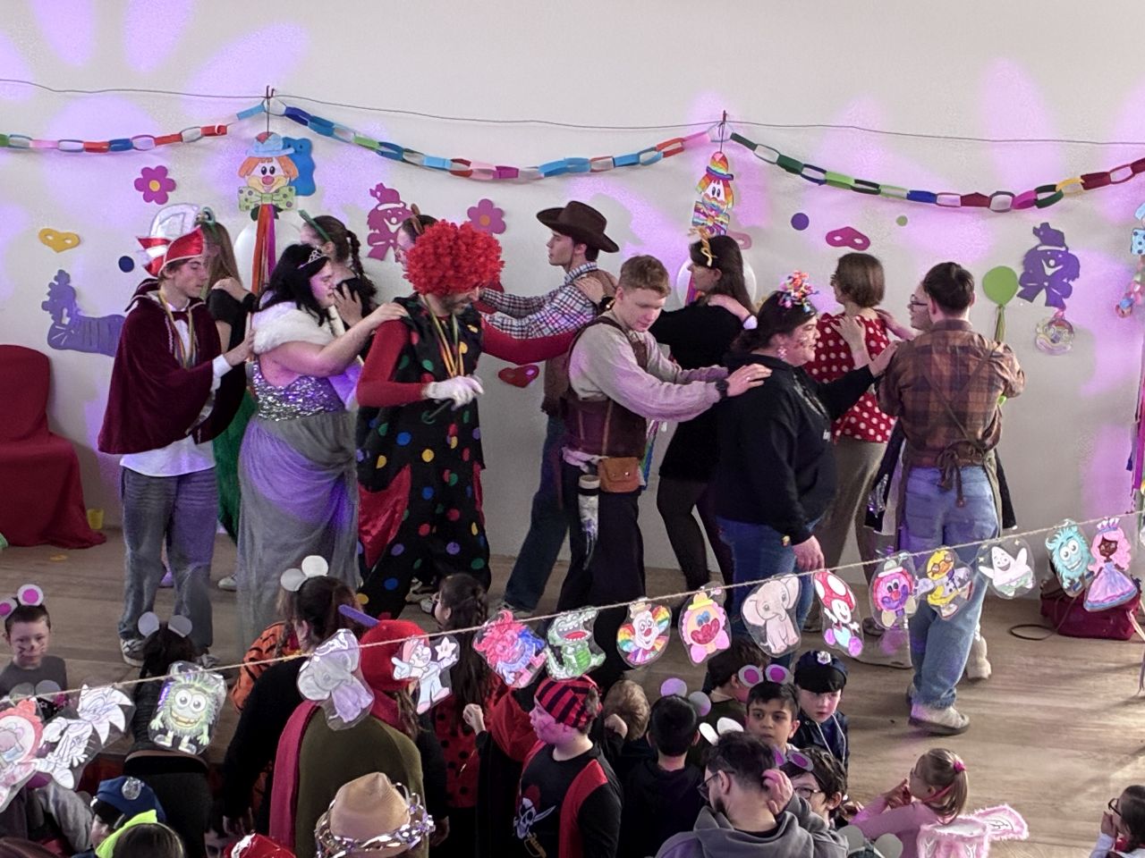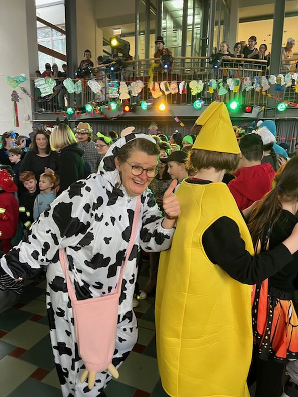 Durch das Programm führten wieder zwei lustige Clowns. Das Prinzenpaar der Schule half tatkräftig mit und verteilte Orden. Jecke Auftritte zeigten die Tanz AG der Franziskus-Schule, viele Klassen und auch die Freiwilligen. Euch allen ebenfalls ein fröhliches und jeckes Danke!