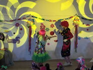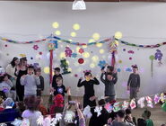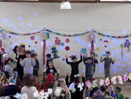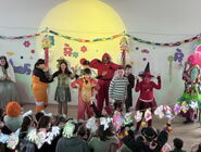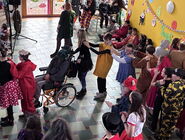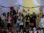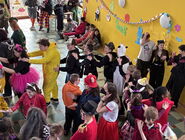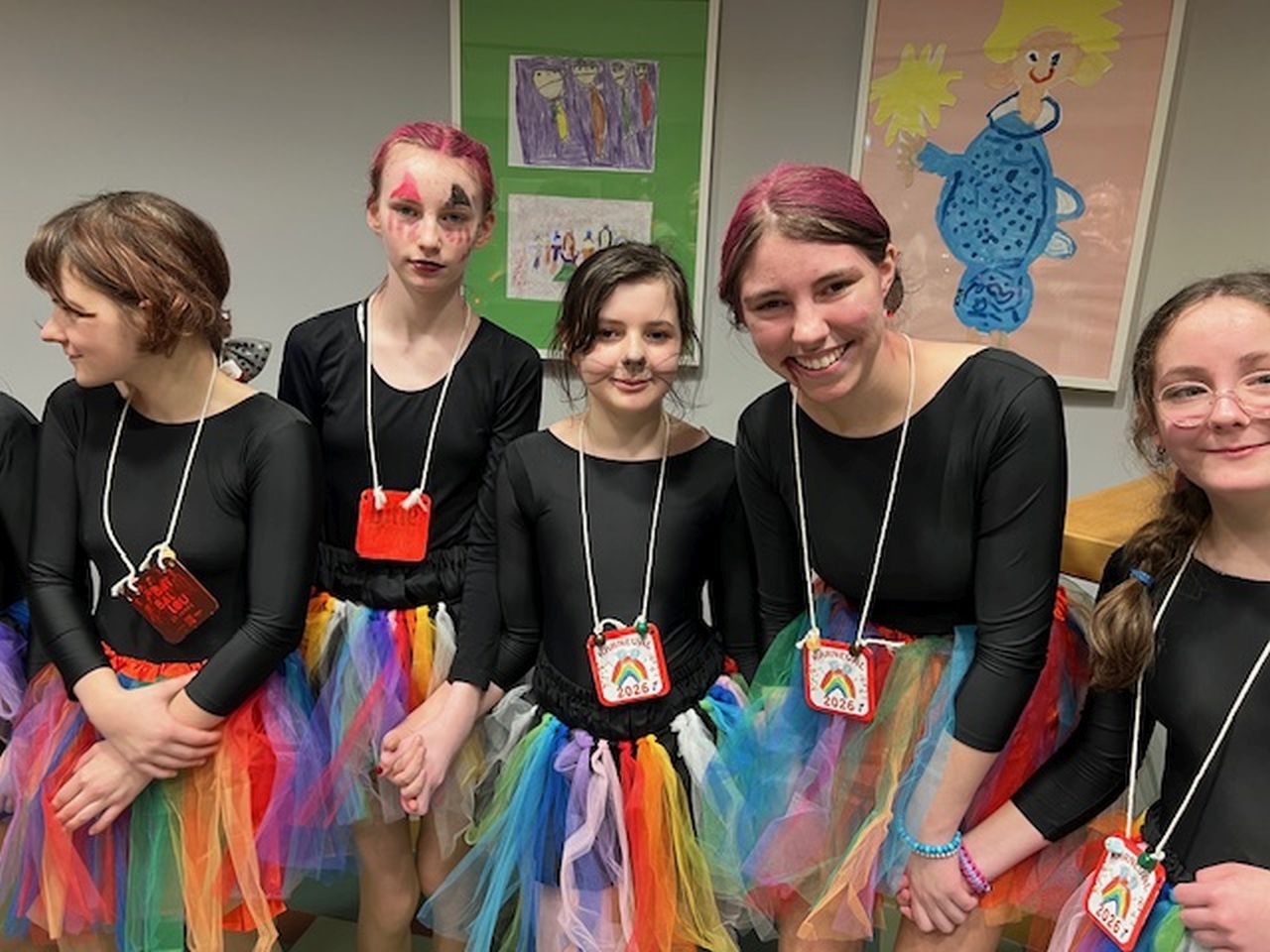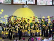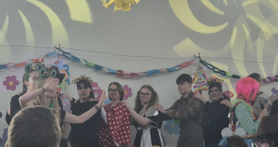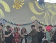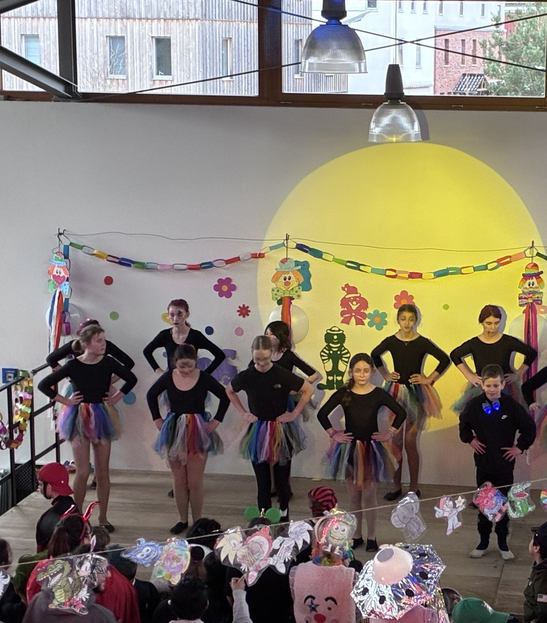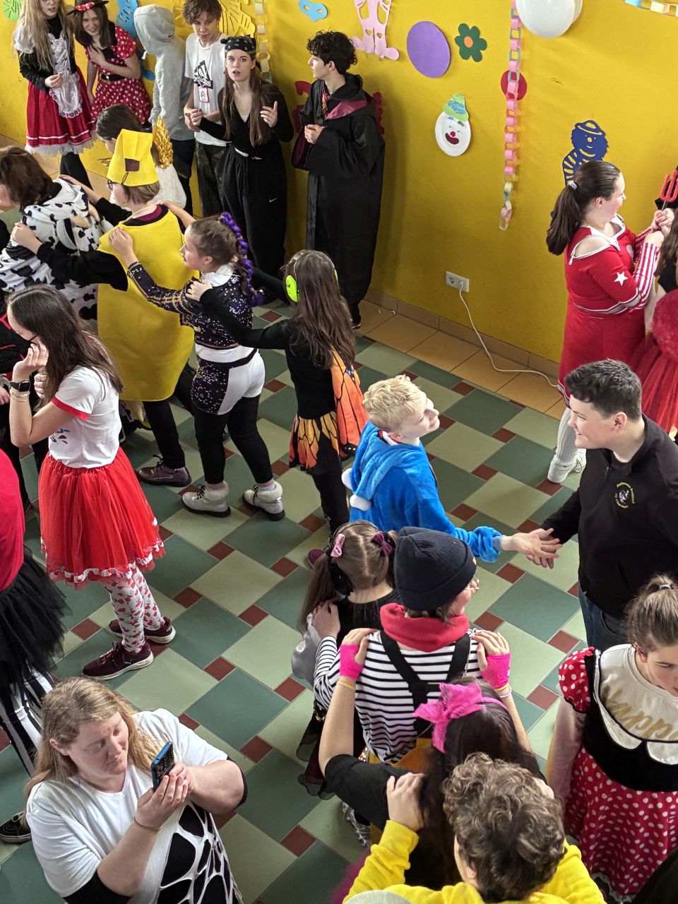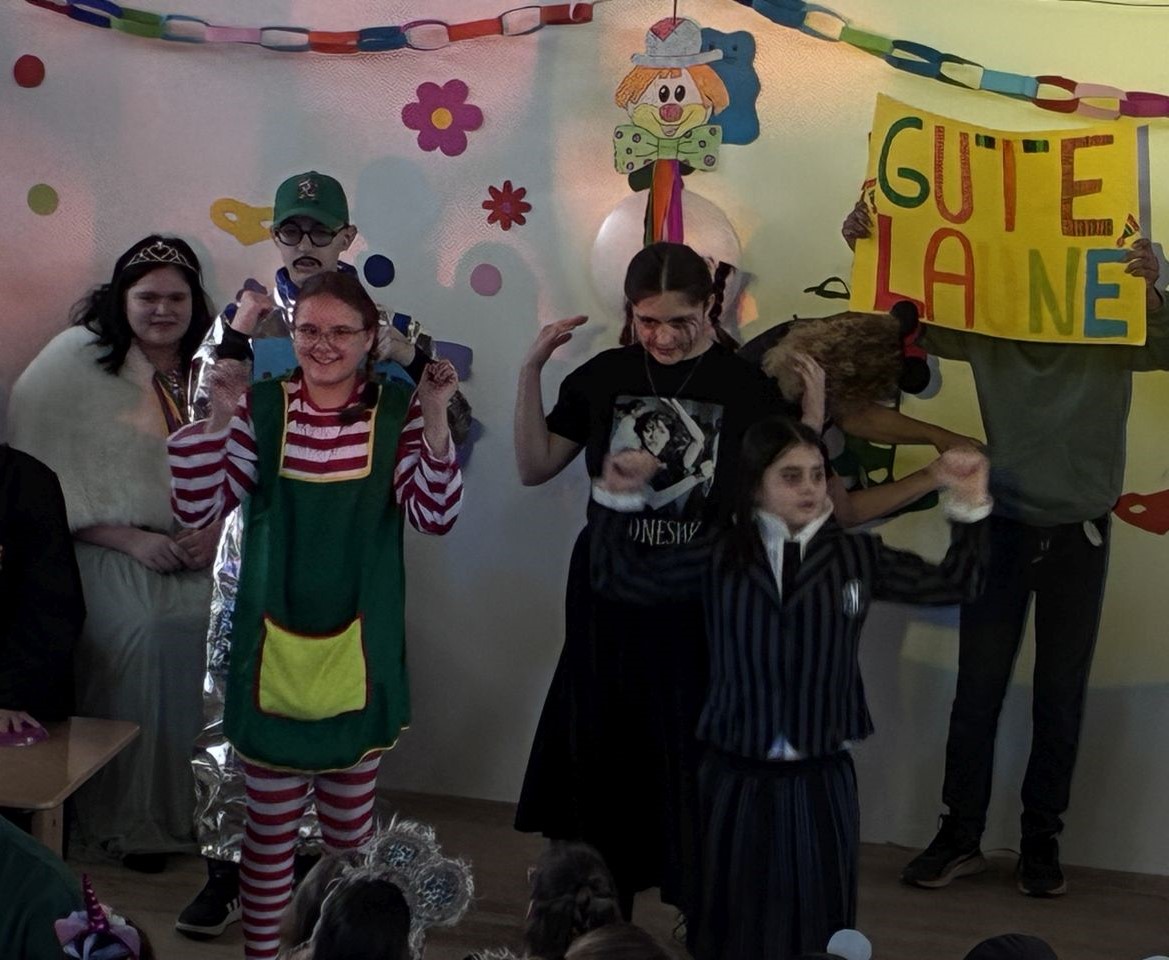 Durch das Programm führten wieder zwei lustige Clowns. Das Prinzenpaar der Schule half tatkräftig mit und verteilte Orden. Jecke Auftritte zeigten die Tanz AG der Franziskus-Schule, viele Klassen und auch die Freiwilligen. Euch allen ebenfalls ein fröhliches und jeckes Danke!