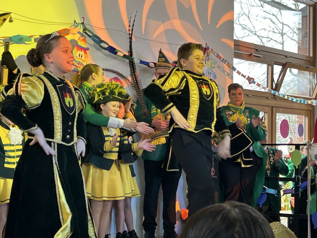 Viel Freude hatten Groß und Klein bei der Karnevalsfeier an der Franziskus-Schule. Auf und vor der Bühne herrschte eine tolle Stimmung. Das Kinderprinzenpaar von Süchteln besuchte uns und auch die Tanzgarde Alt Viersen erfreute alle mit einem tollen Auftritt. Ein dreifaches Dankeschön dafür!