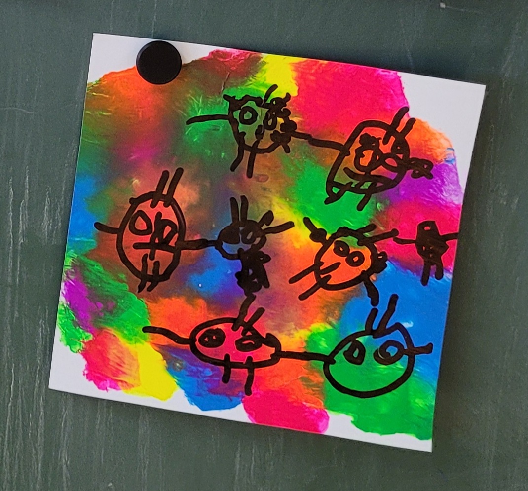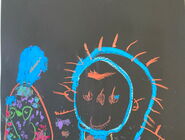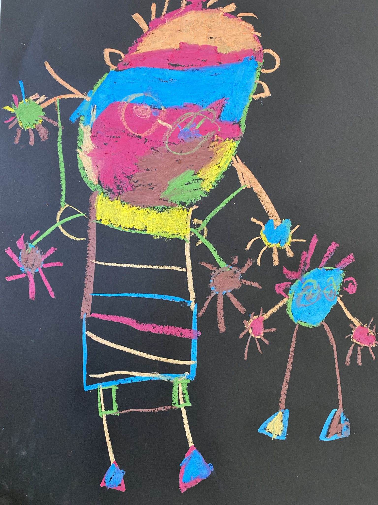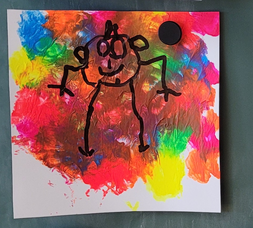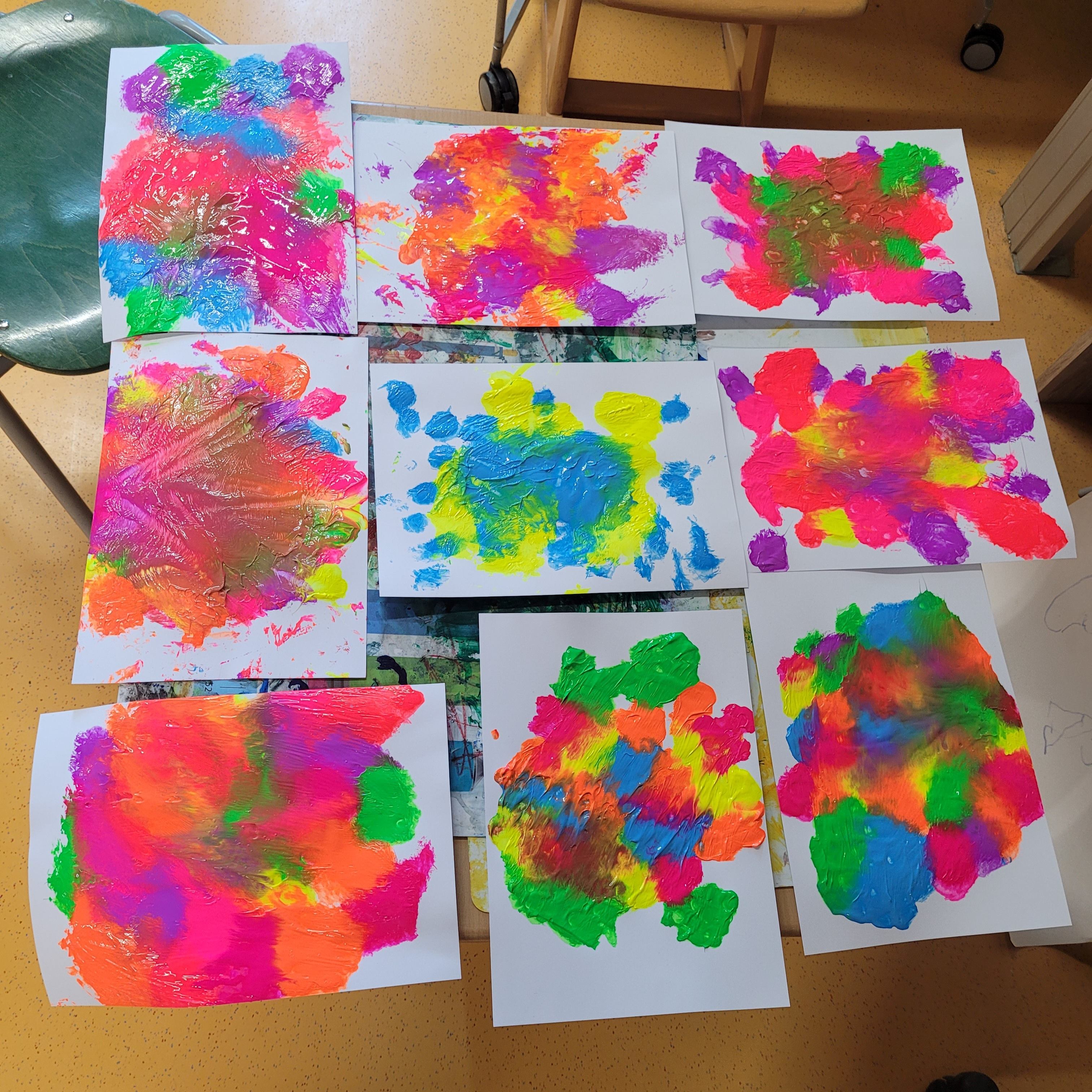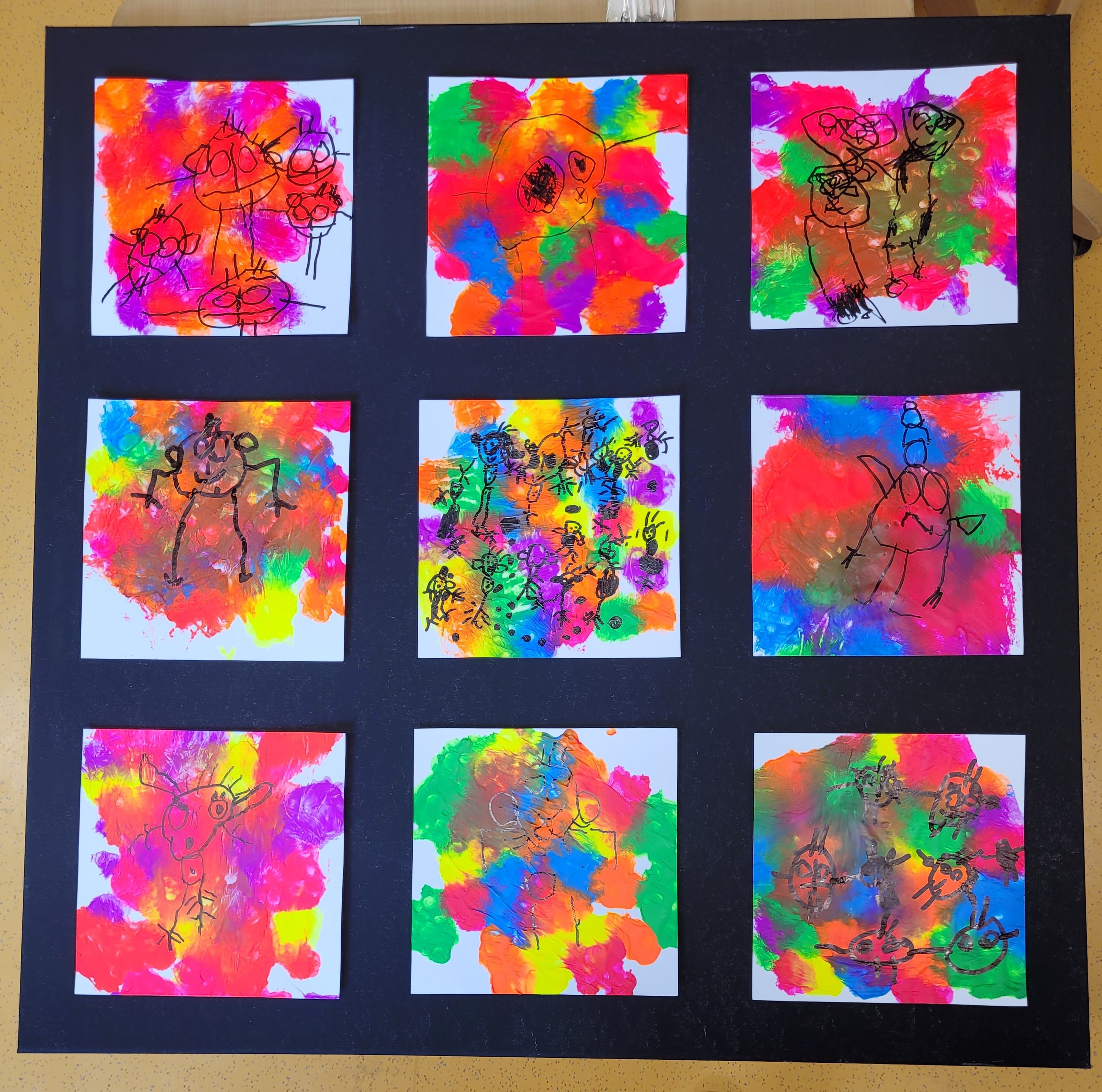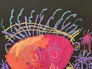 Die Schülerinnen und Schüler der E5 und E6 haben in diesem Schuljahr an der Kunstausstellung „Andersschön“ teilgenommen. Gemeinsam malten sie als Künstlerinnen und Künstler „andersschöne Menschen“. Die E6 malte dabei mit Zuckerkreide auf schwarze Pappe und die E5 färbte mithilfe der Folientechnik dickes Papier mit Neon-Acrylfarbe bunt und malte darauf mit schwarzem Stift Menschen nach den je eigenen Vorstellungen.