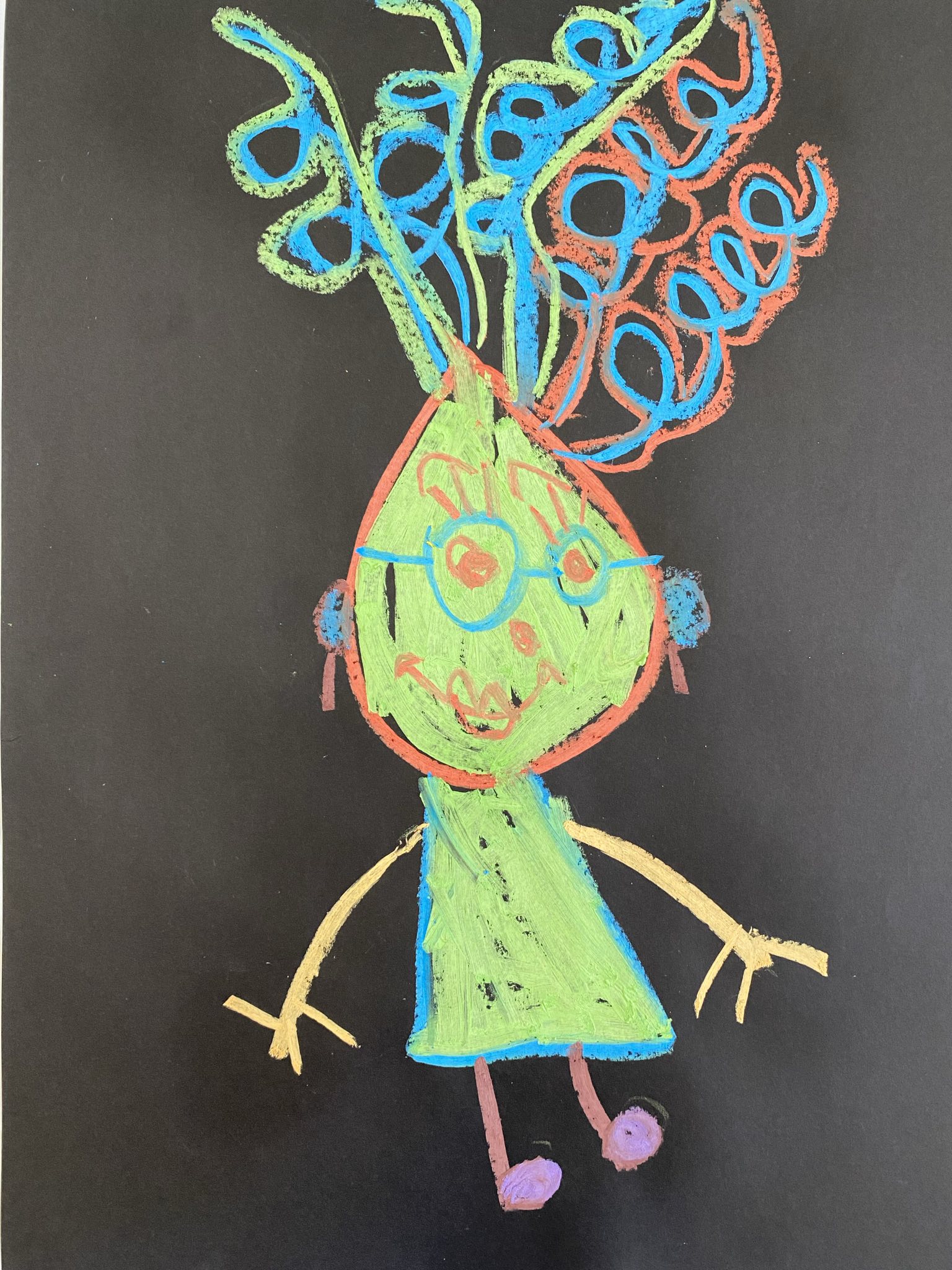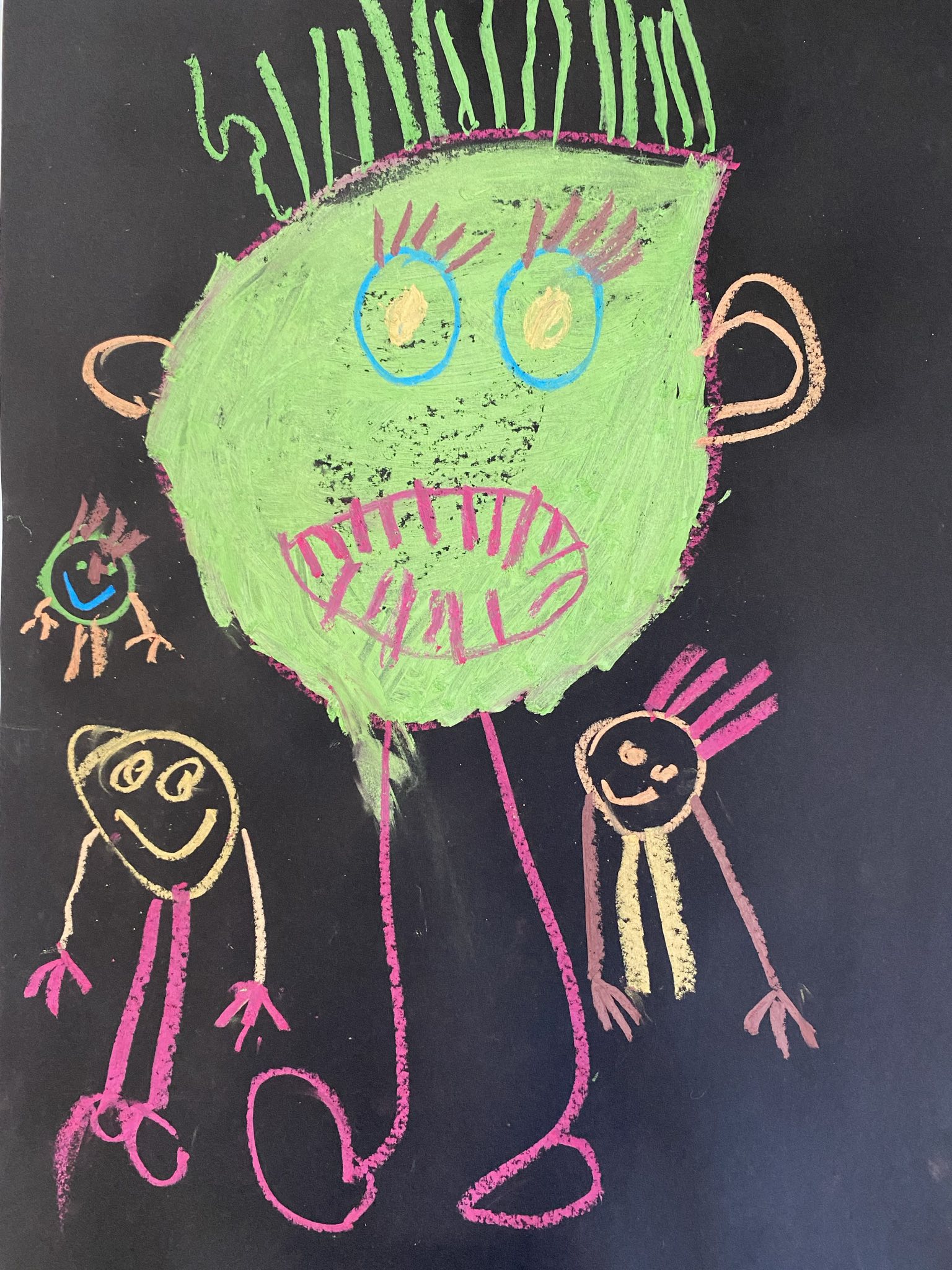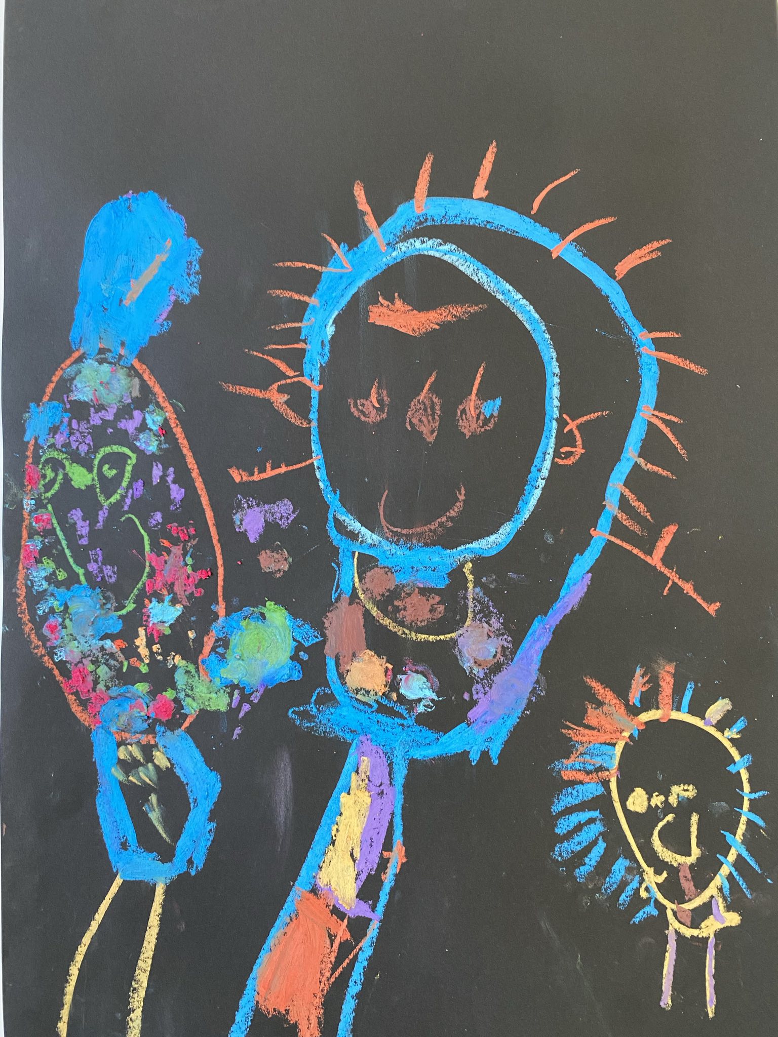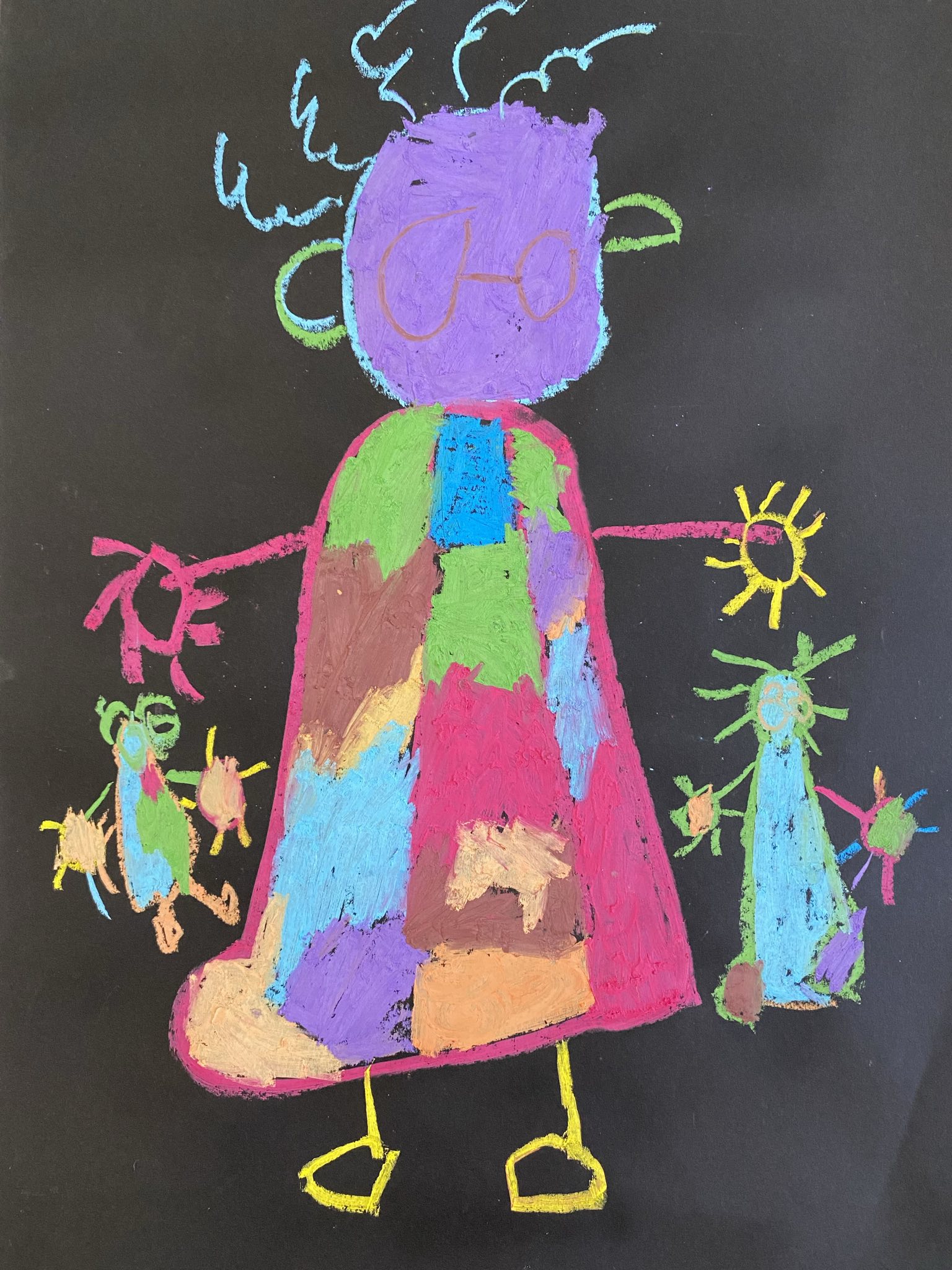 Die Schülerinnen und Schüler der E5 und E6 haben in diesem Schuljahr an der Kunstausstellung „Andersschön“ teilgenommen. Gemeinsam malten sie als Künstlerinnen und Künstler „andersschöne Menschen“. Die E6 malte dabei mit Zuckerkreide auf schwarze Pappe und die E5 färbte mithilfe der Folientechnik dickes Papier mit Neon-Acrylfarbe bunt und malte darauf mit schwarzem Stift Menschen nach den je eigenen Vorstellungen.