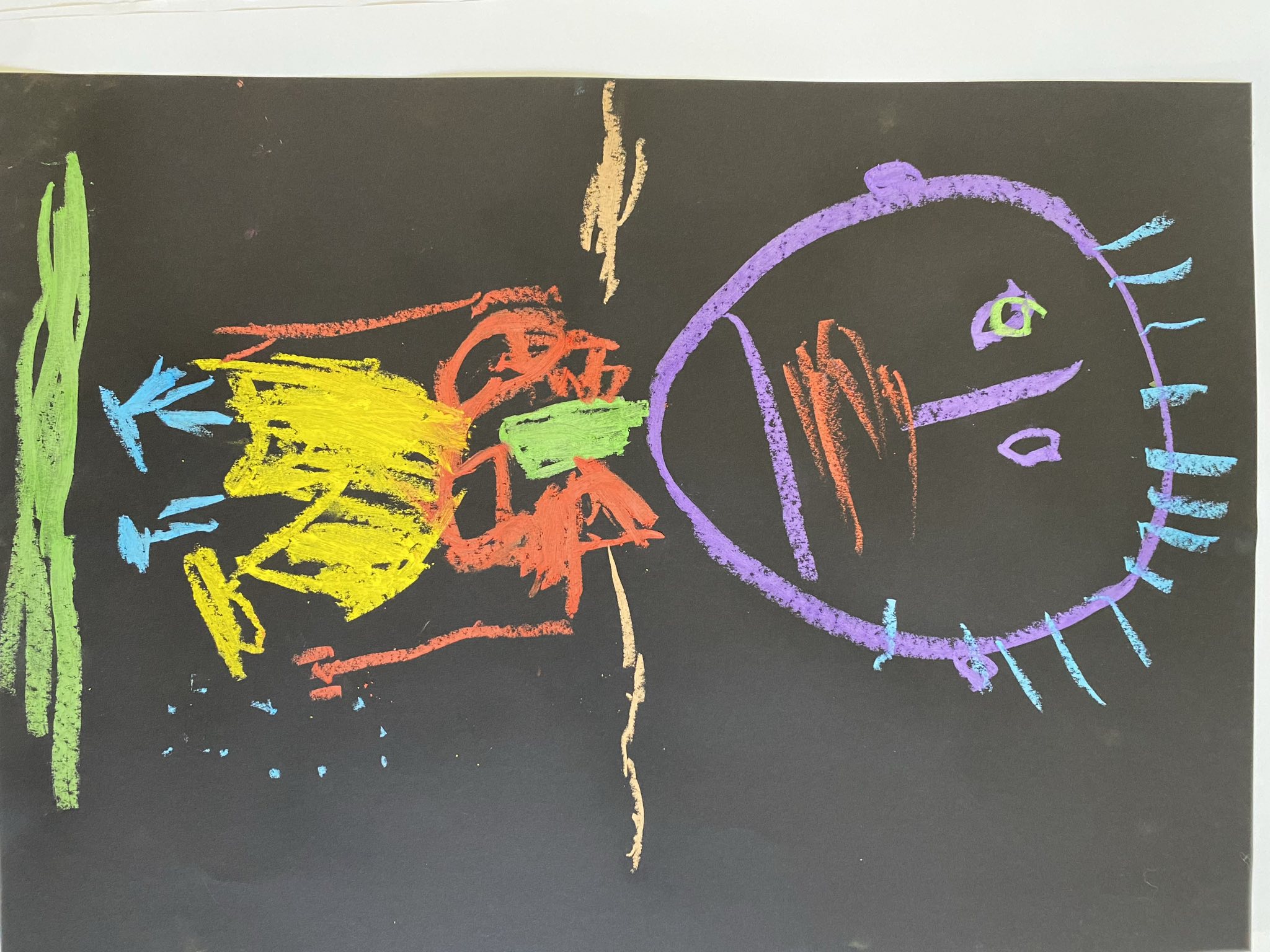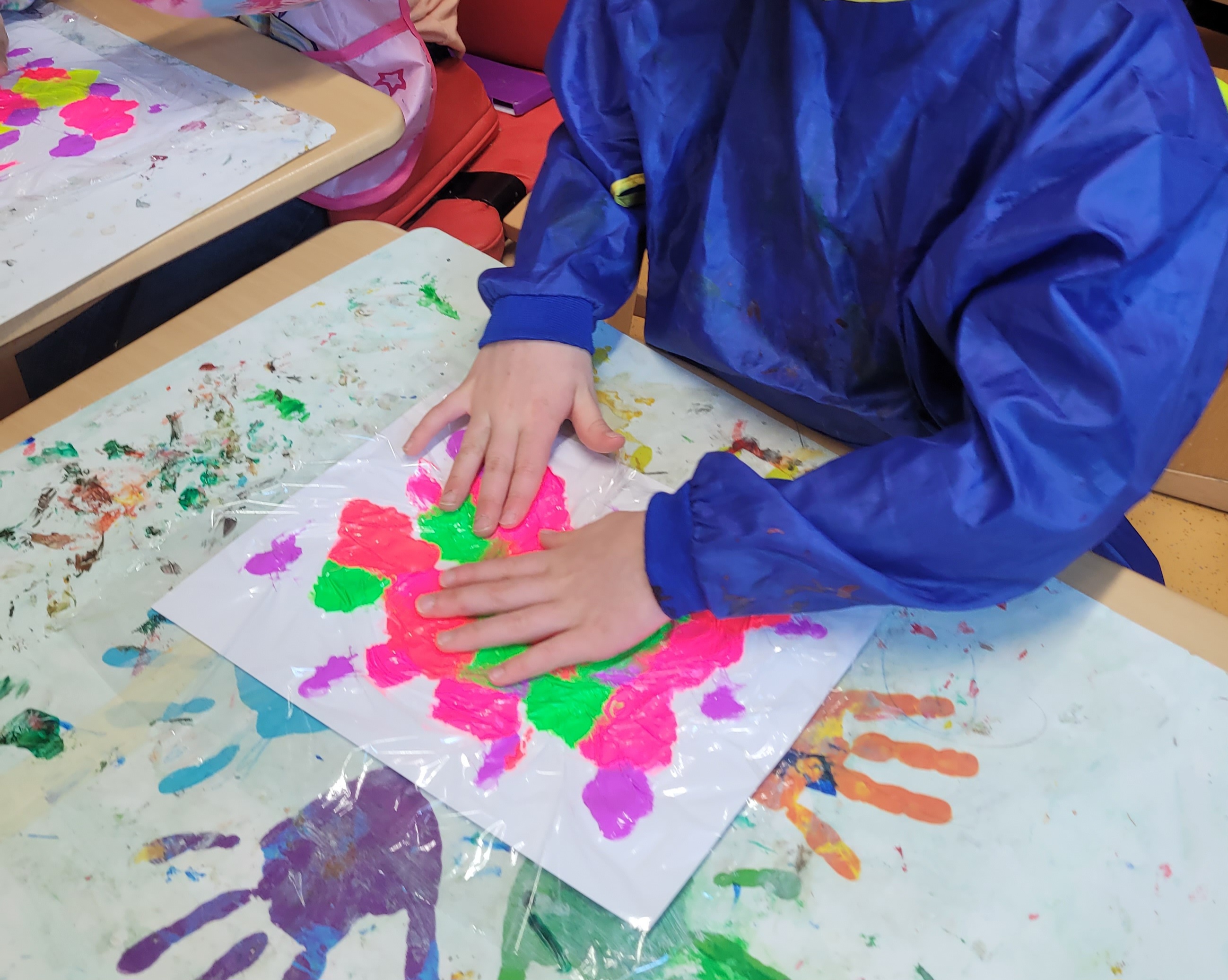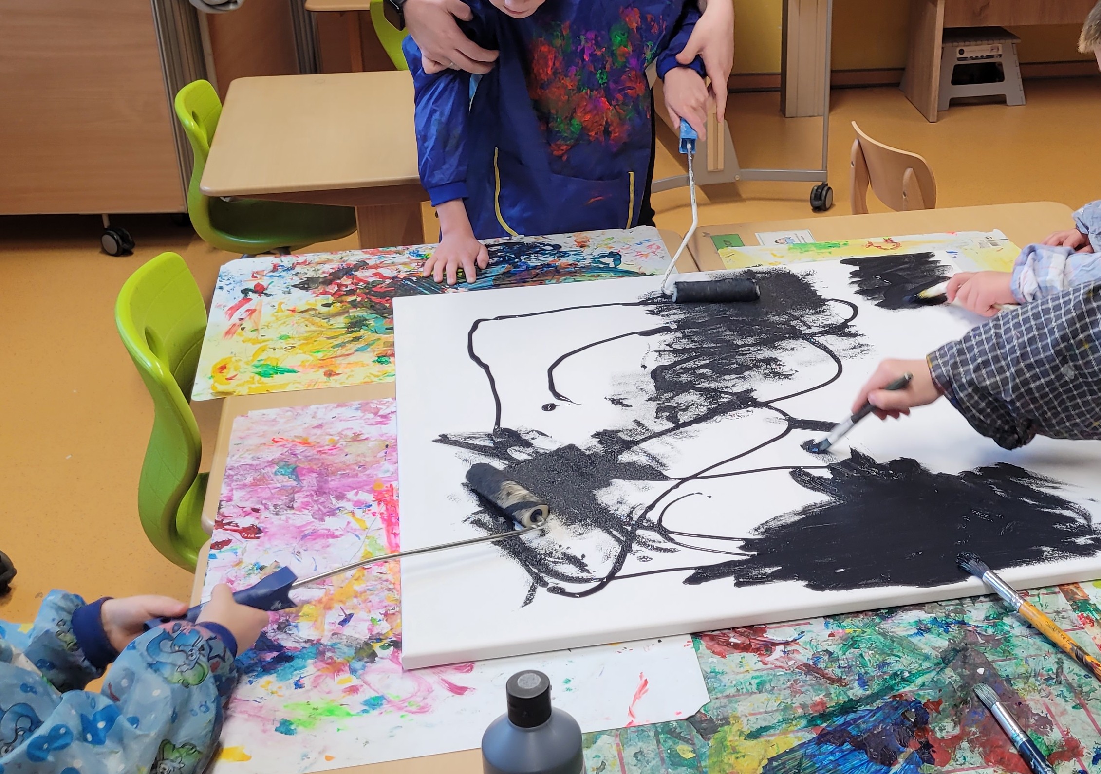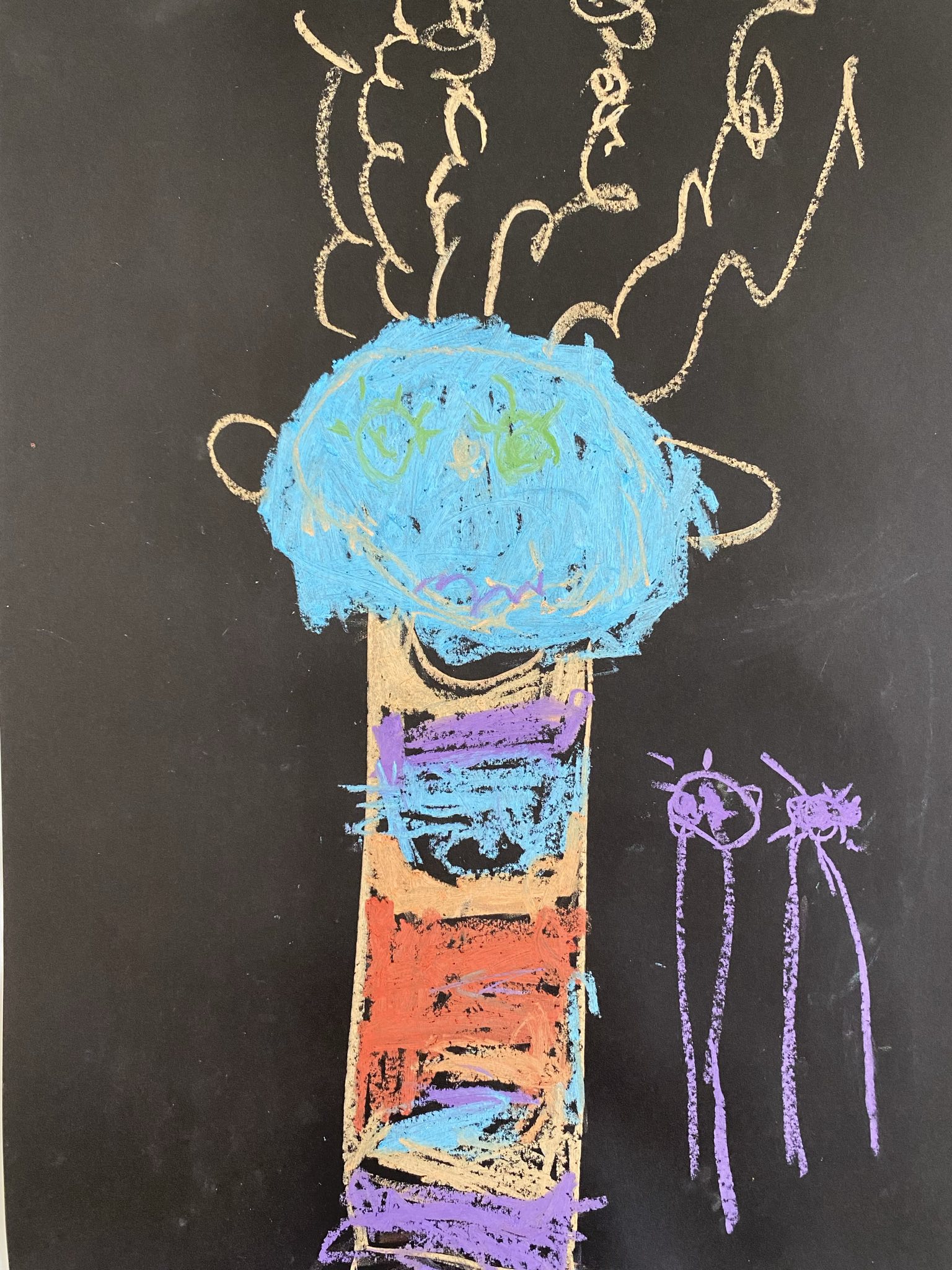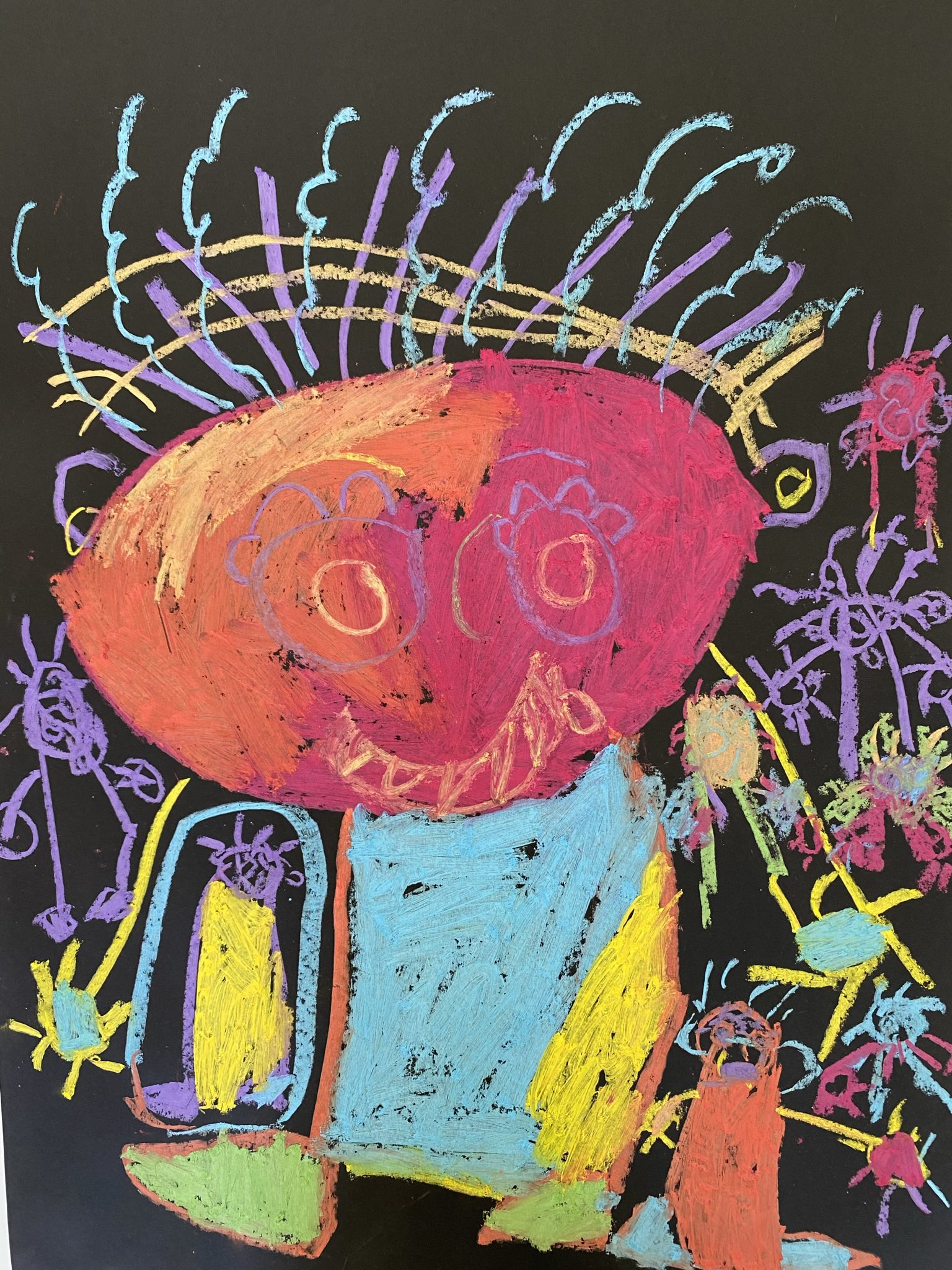 Die Schülerinnen und Schüler der E5 und E6 haben in diesem Schuljahr an der Kunstausstellung „Andersschön“ teilgenommen. Gemeinsam malten sie als Künstlerinnen und Künstler „andersschöne Menschen“. Die E6 malte dabei mit Zuckerkreide auf schwarze Pappe und die E5 färbte mithilfe der Folientechnik dickes Papier mit Neon-Acrylfarbe bunt und malte darauf mit schwarzem Stift Menschen nach den je eigenen Vorstellungen.