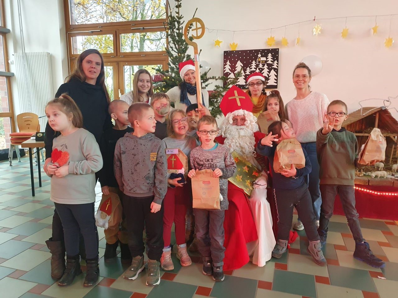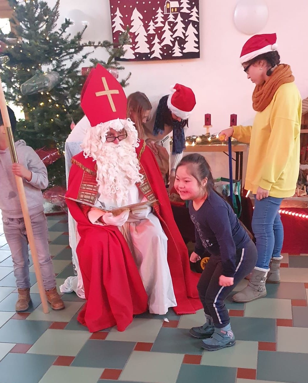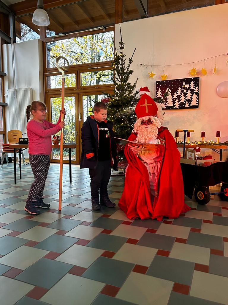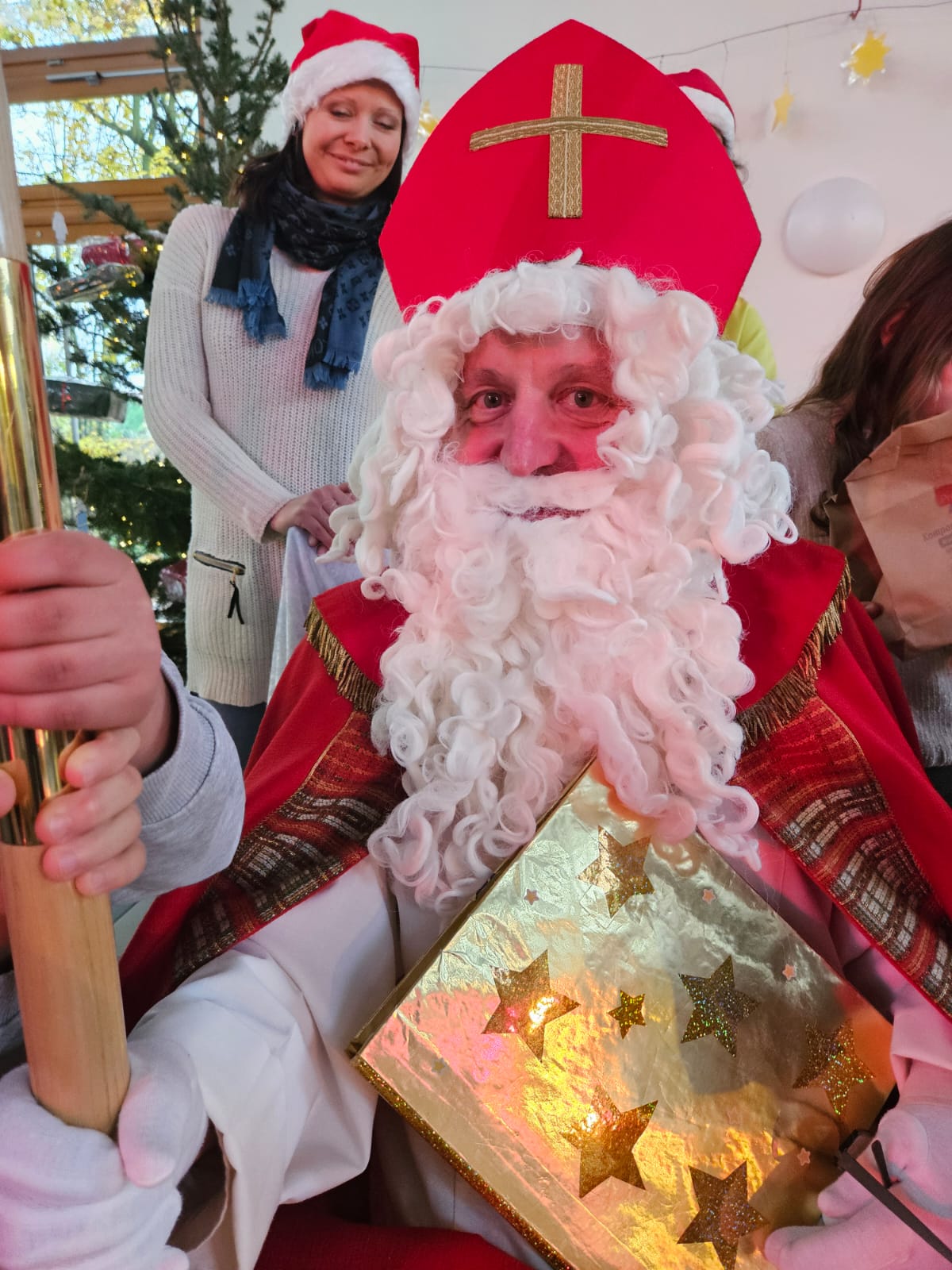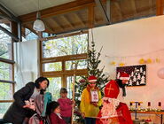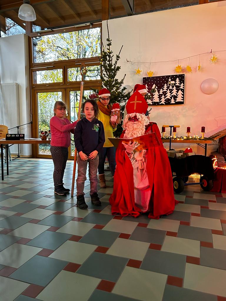 Am 06. Dezember war die Aufregung in den Eingangsstufen und Primarstufenklassen groß, der Nikolaus ist da. Mit leuchtenden Augen und Kribbeln im Bauch nahmen die Kinder im Forum platz und lauschten dem Nikolaus. Denn neben zwei fleißigen Helferinnen hatte er sein großes goldenes Buch dabei. Zu jedem Kind gab es es einen kleinen Text und eine Nikolaustüte mit Leckereien.