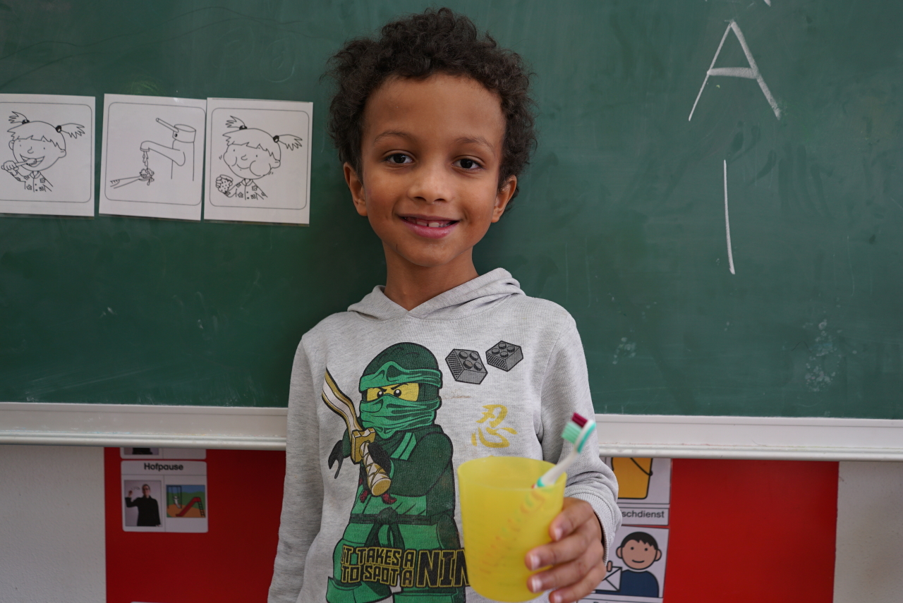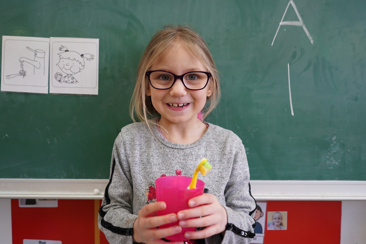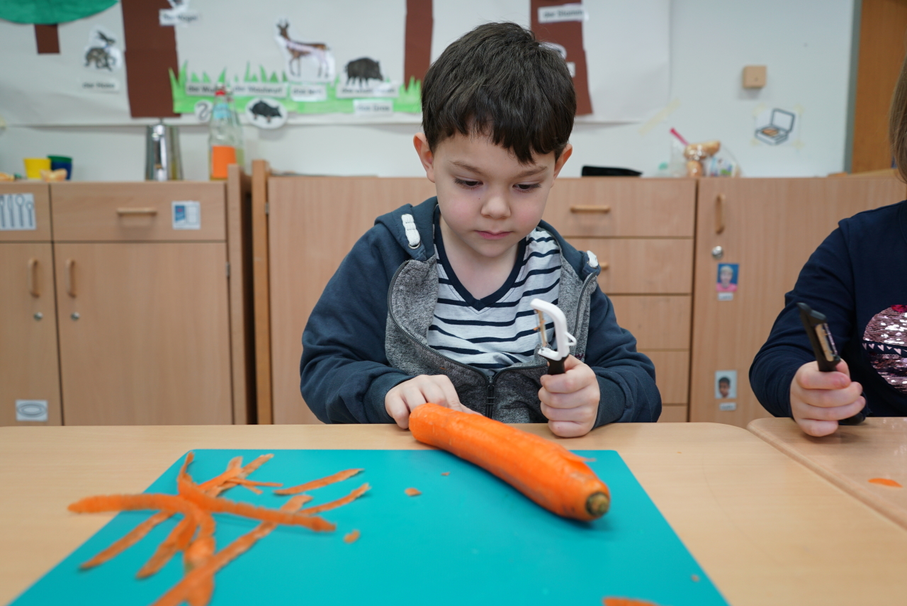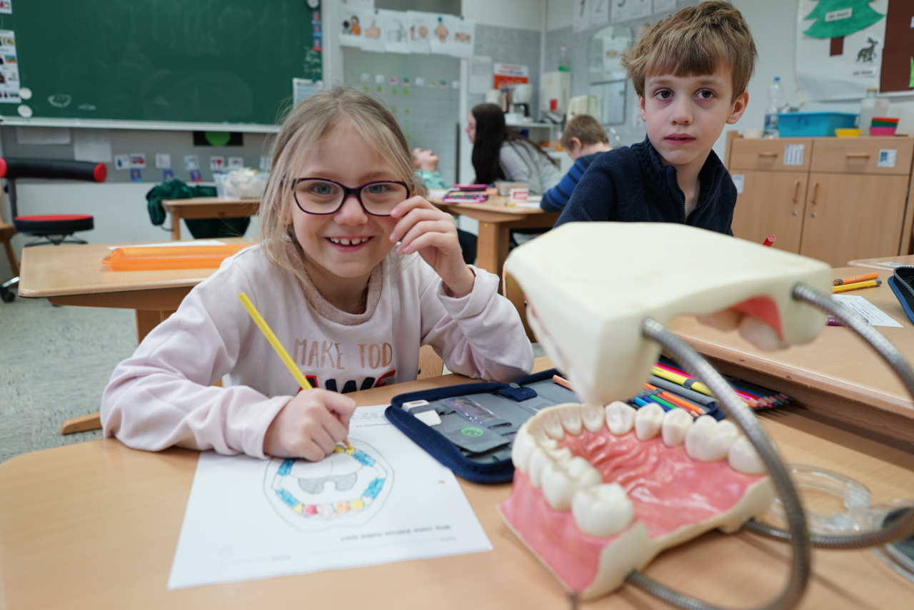 Wir haben gelernt was zur gesunden Ernährung gehört, wie man gesund kocht und wie viel Zucker in Lebensmitteln ist. Außerdem haben wir unsere Zähne erforscht. Wir haben gemeinsam Mittagessen zubereitet und Sport in der Aula gemacht.