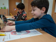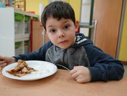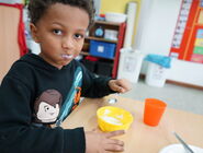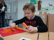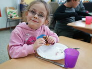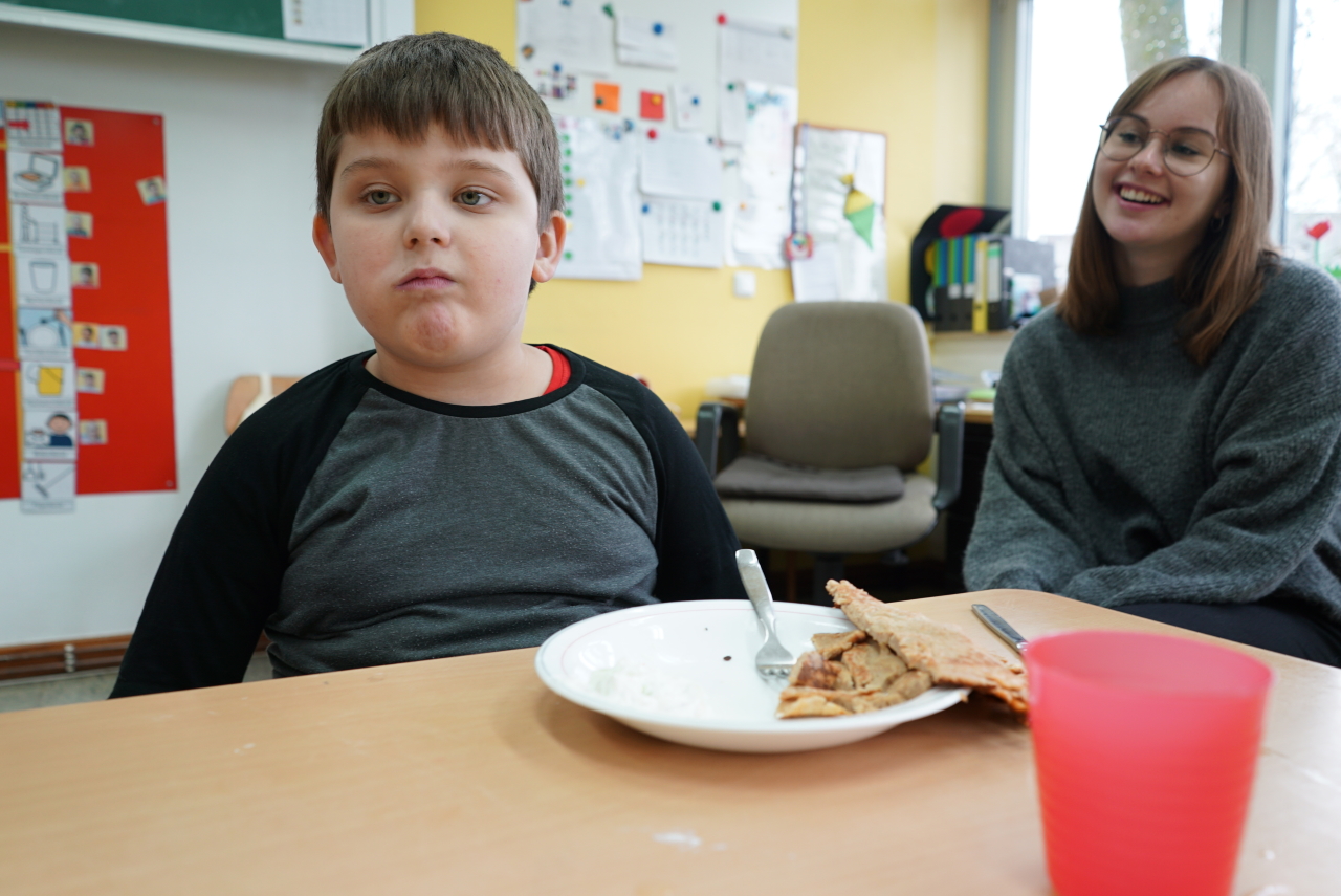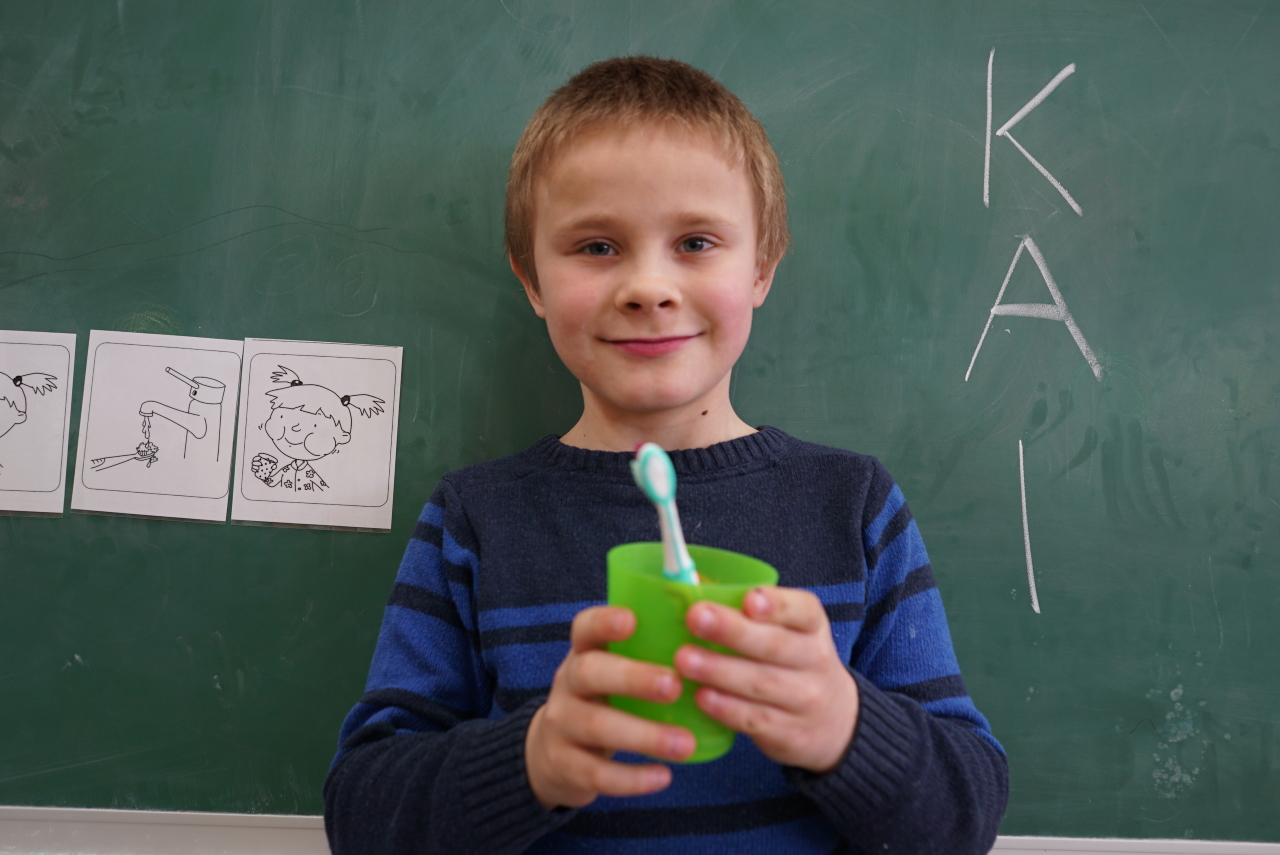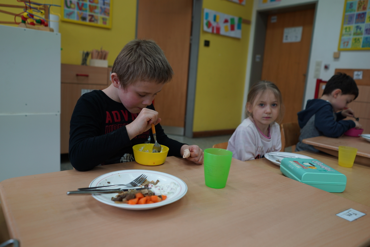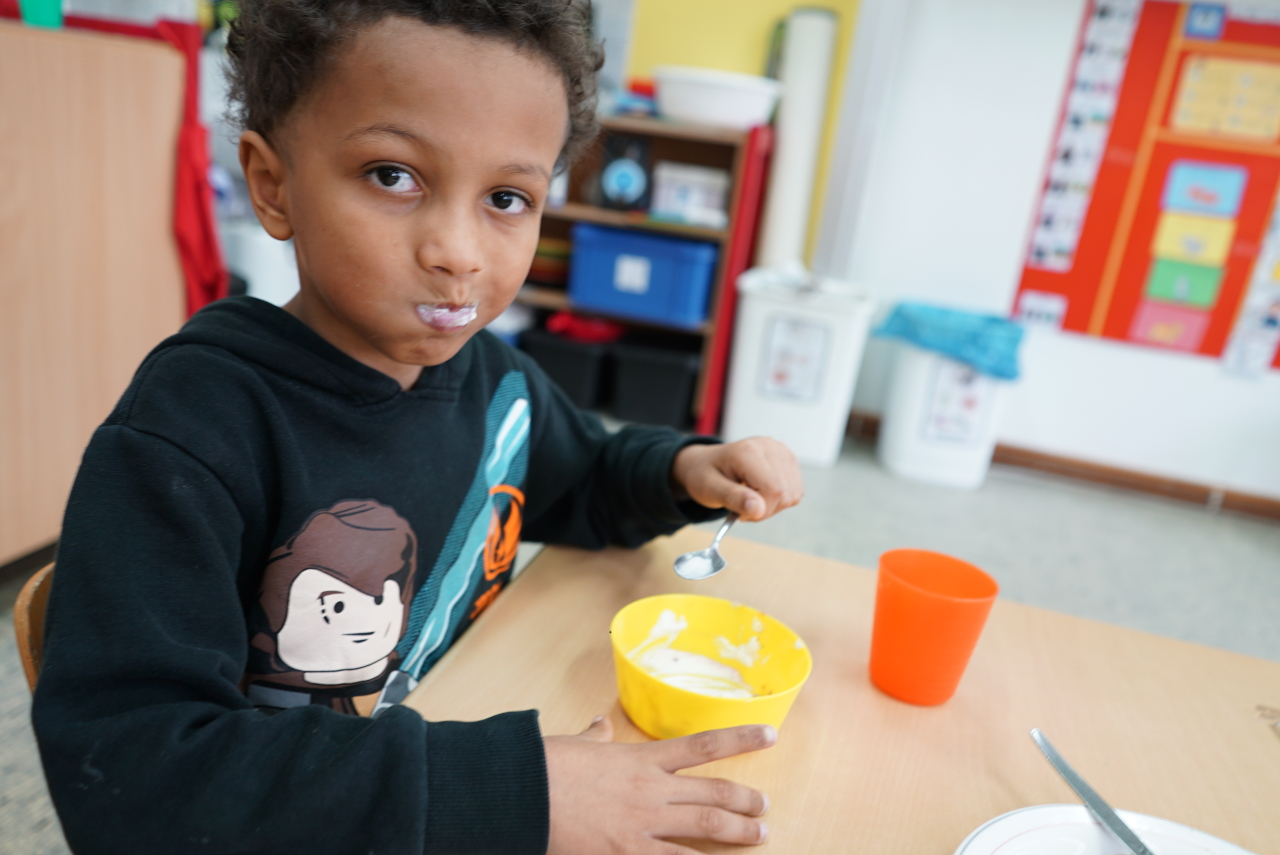 Wir haben gelernt was zur gesunden Ernährung gehört, wie man gesund kocht und wie viel Zucker in Lebensmitteln ist. Außerdem haben wir unsere Zähne erforscht. Wir haben gemeinsam Mittagessen zubereitet und Sport in der Aula gemacht.