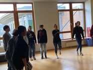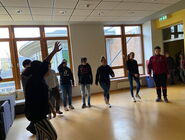 Während der Projektwoche trafen sich fast alle Schülerinnen und Schüler auf der Freifläche, um bereits mit Bewegung in den Tag zu starten. Zu flotter Musik wurden Aerobic-Übungen durchgeführt. Hier kamen teilweise auch die Erwachsenen an ihre Grenzen, wenn es darum ging, Arm- und Beinbewegungen richtig auszuführen. Aber egal, der Spaß stand im Vordergrund. Nach der anschließenden Gymnastik von Kopf bis Fuß waren alle fit und gingen in die verschiedenen Gruppen. Eine Gruppe machte sich auf, um die Umgebung zu erwandern und den Wald zu erkunden. In anderen Gruppen wurde Brot gebacken, Müsli oder Brotaufstriche wurden zubereitet, sowie alles was zu einem gesunden Frühstück gehört. Auch die Theorie kam nicht zu kurz. Die Schülerinnen und Schüler beschäftigten sich mit den verschiedenen Nahrungsgruppen und lernten die Ernährungspyramide kennen.