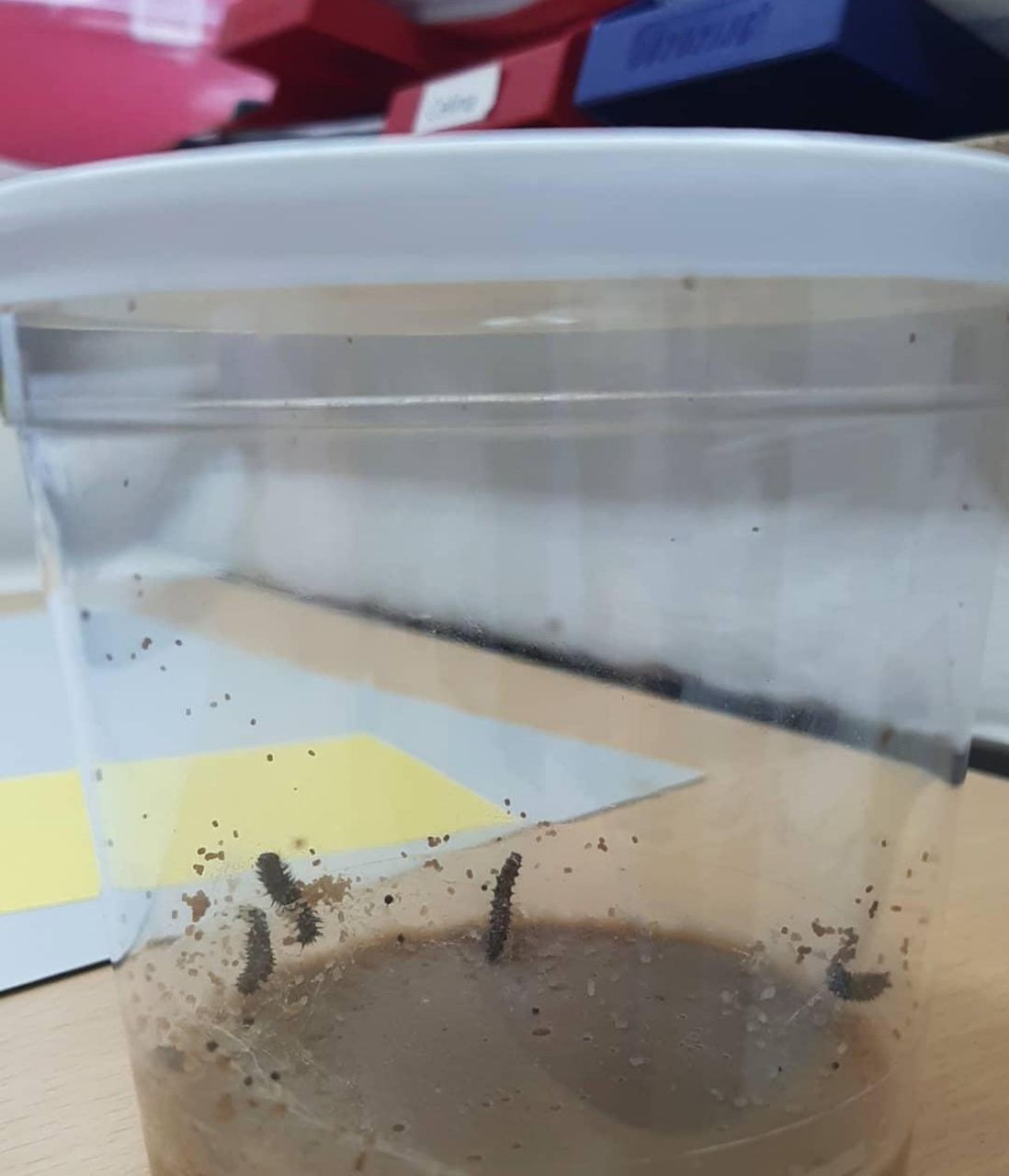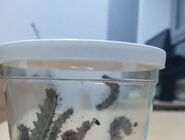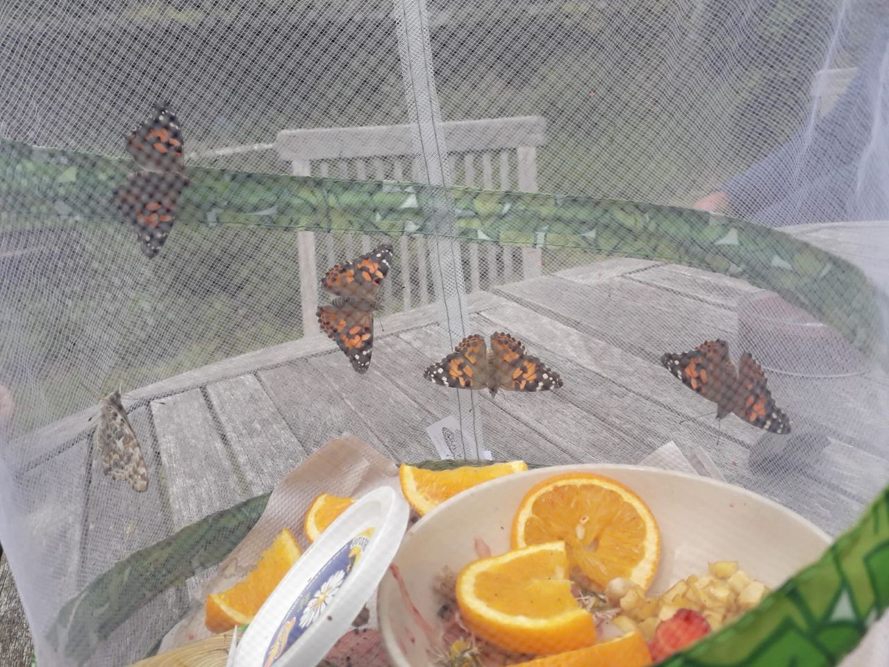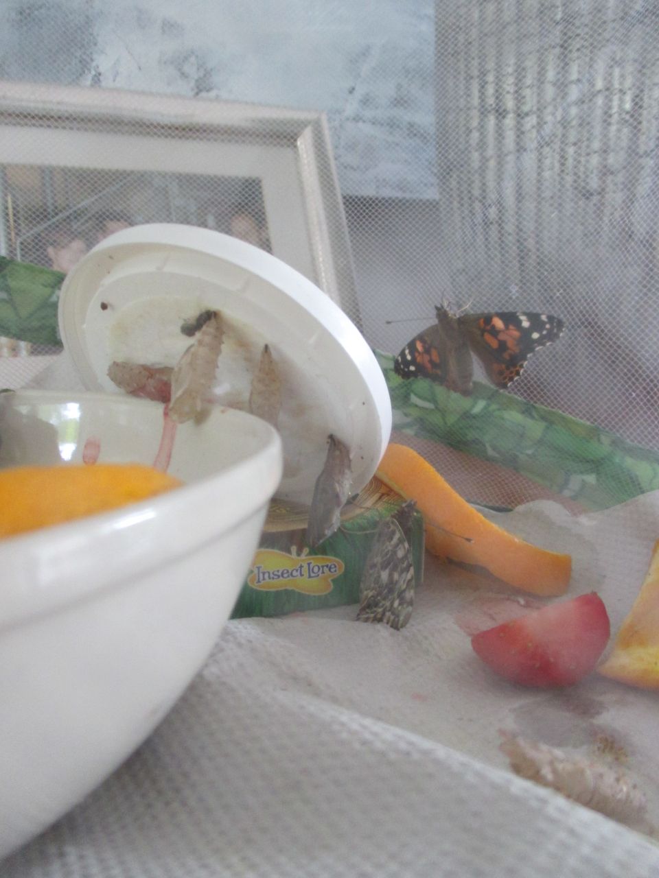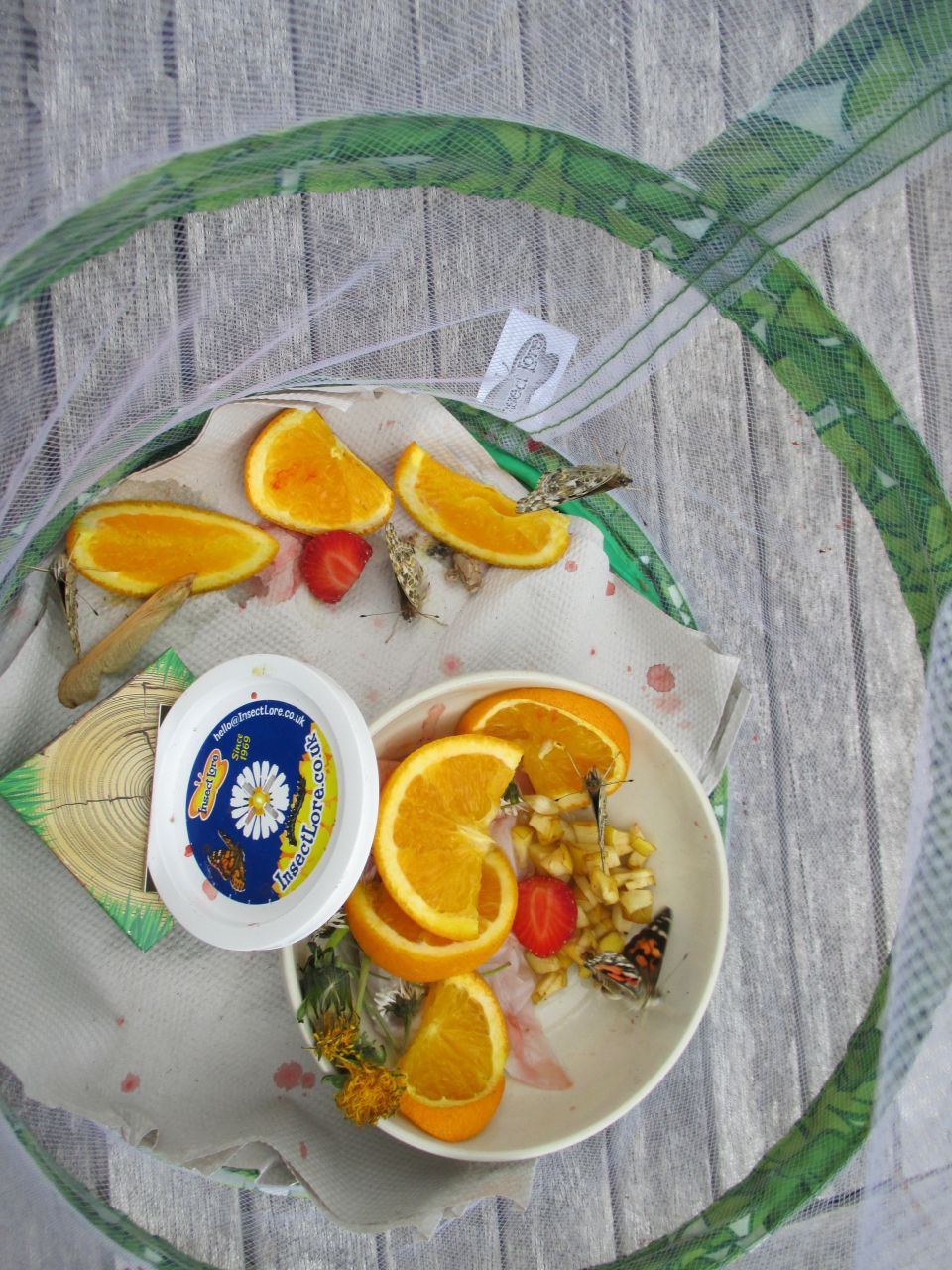 Wir haben sie zuerst mit Raupenbrei und dann mit Löwenzahn, Äpfeln und Orangen gefüttert.