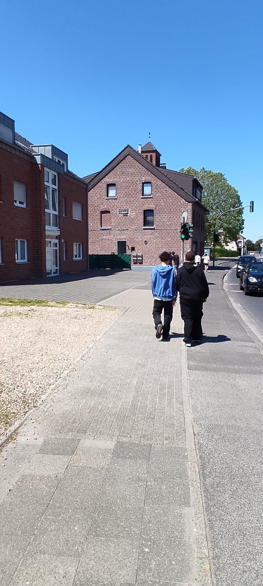 So ging es bei einem gemeinsamen Spaziergang um das Verhalten an befahrenen Straßen und das Überqueren einer Straße an einer Ampel.