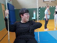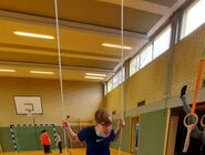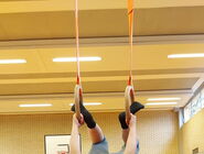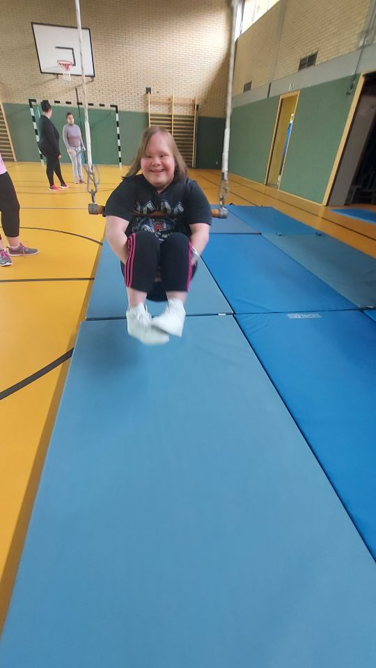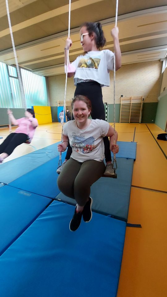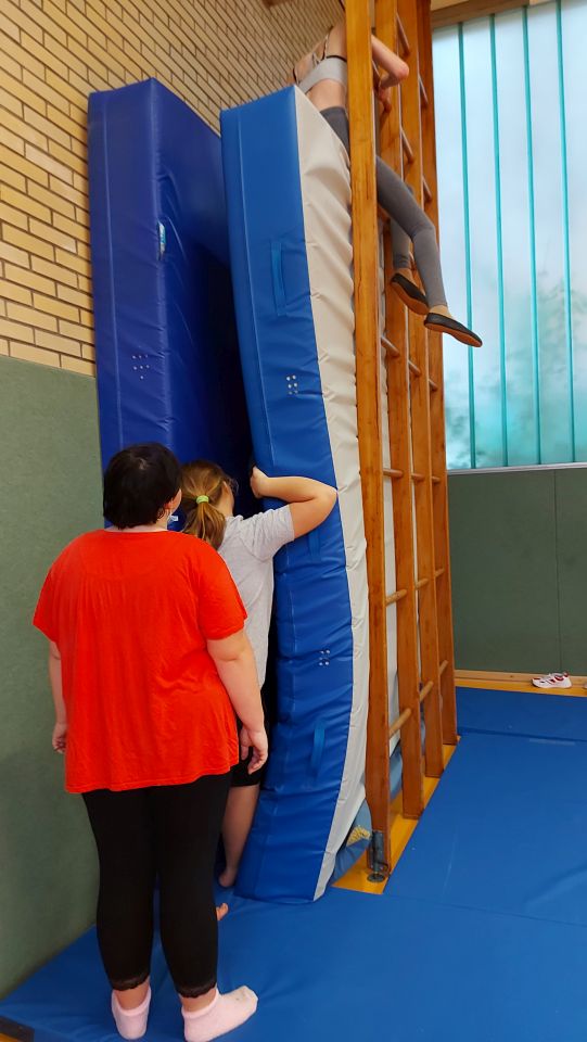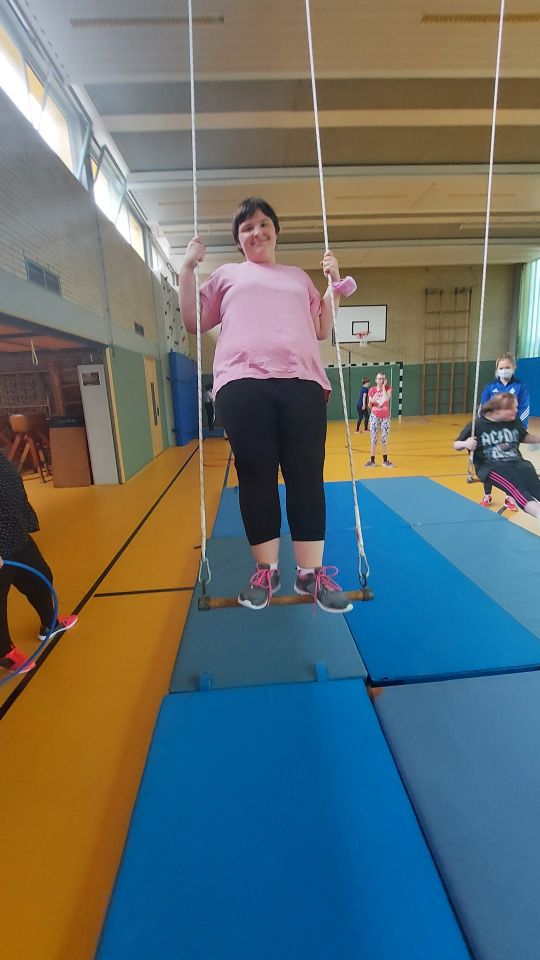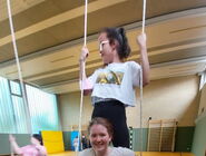 Wir haben beim Mädchen Sport an den Ringen geturnt das hat sehr viel Spaß gemacht und auf dem Pferd haben wir ein paar Kunststücke gemacht anschließend sind wir hoch geklettert und in die Gletscherspalte runtergerutscht.