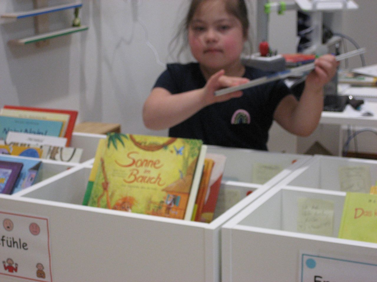 Jeweils am Mittwoch und Donnerstag von 10.30 – 11.00 Uhr ist ist es dann soweit: In dieser Zeit können alle Schüler und Schülerinnen Bücher ausleihen oder diese vor Ort lesen und anschauen. Wie in jeder Bücherei gibt es eine Ausleihfrist (in der Regel 2 Wochen), die eingehalten werden muss. Für die Ausleihe hat jede Schülerin und jeder Schüler einen eigenen Ausweis bekommen. Außerdem müssen wichtige Bücherei-Regeln eingehalten werden, wie z.B. sorgsam mit den Büchern umzugehen.