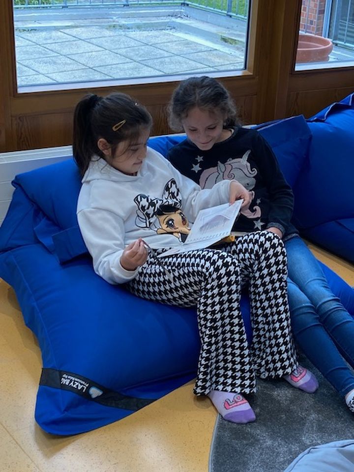 Im September 2023 öffnete die Schulbücherei wieder ihre Türen: Alle, die kamen, konnten sich davon überzeugen, wie ansprechend und schön die neu gestaltete Bücherei im Obergeschoss der Franziskus-Schule geworden ist. Mit viel Licht, bequemen Sitzecken und einem Lesezelt lädt die Bücherei nicht nur zum Ausleihen, sondern während der Öffnungszeiten auch zum Schmökern, Lesen und zum Hörbuch hören ein.