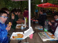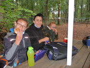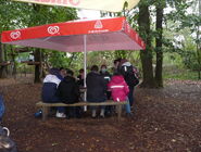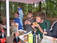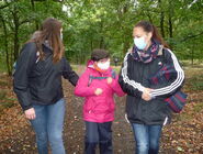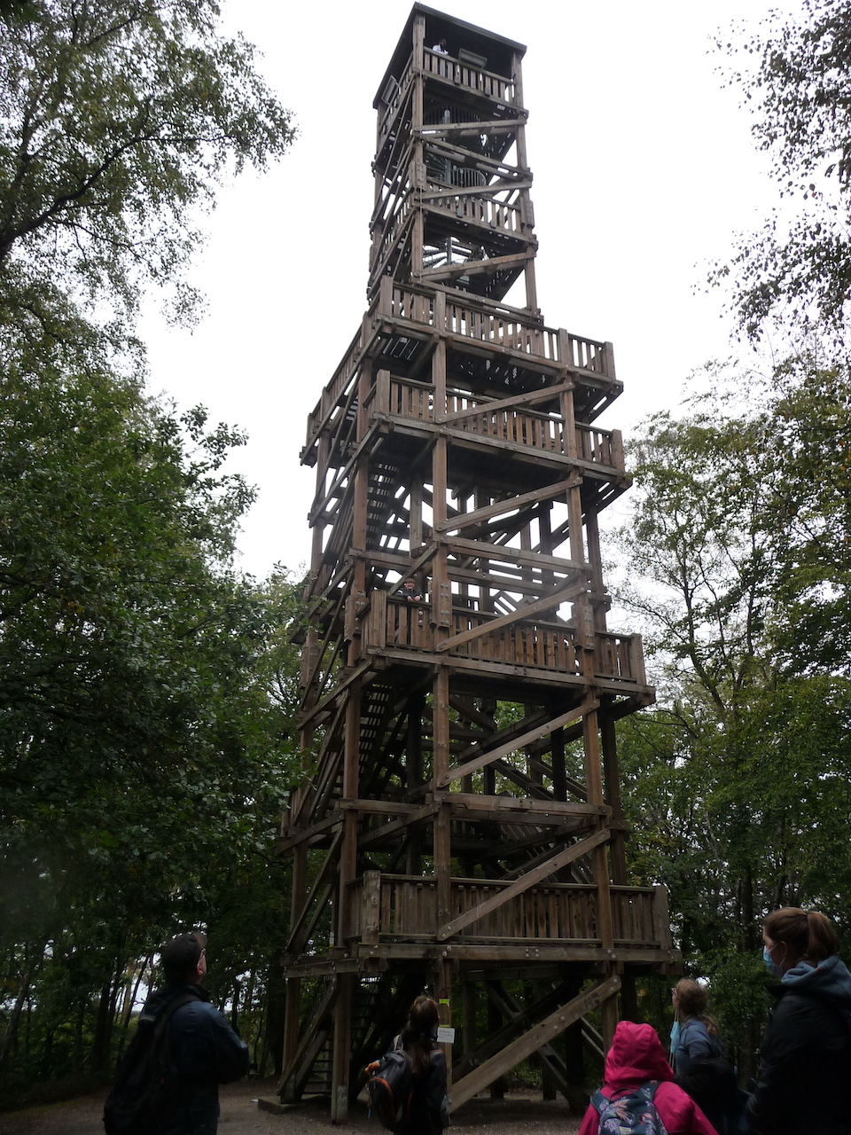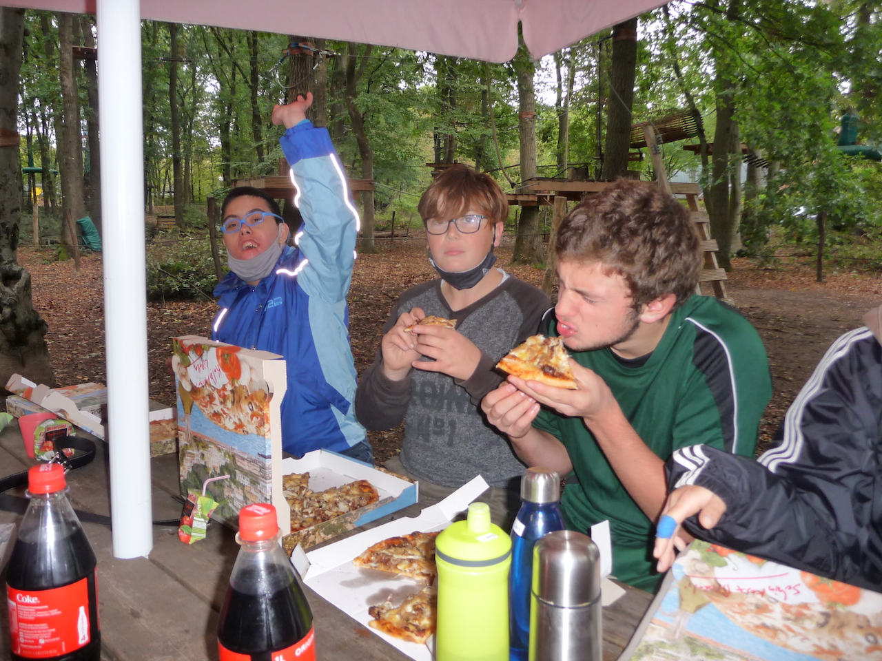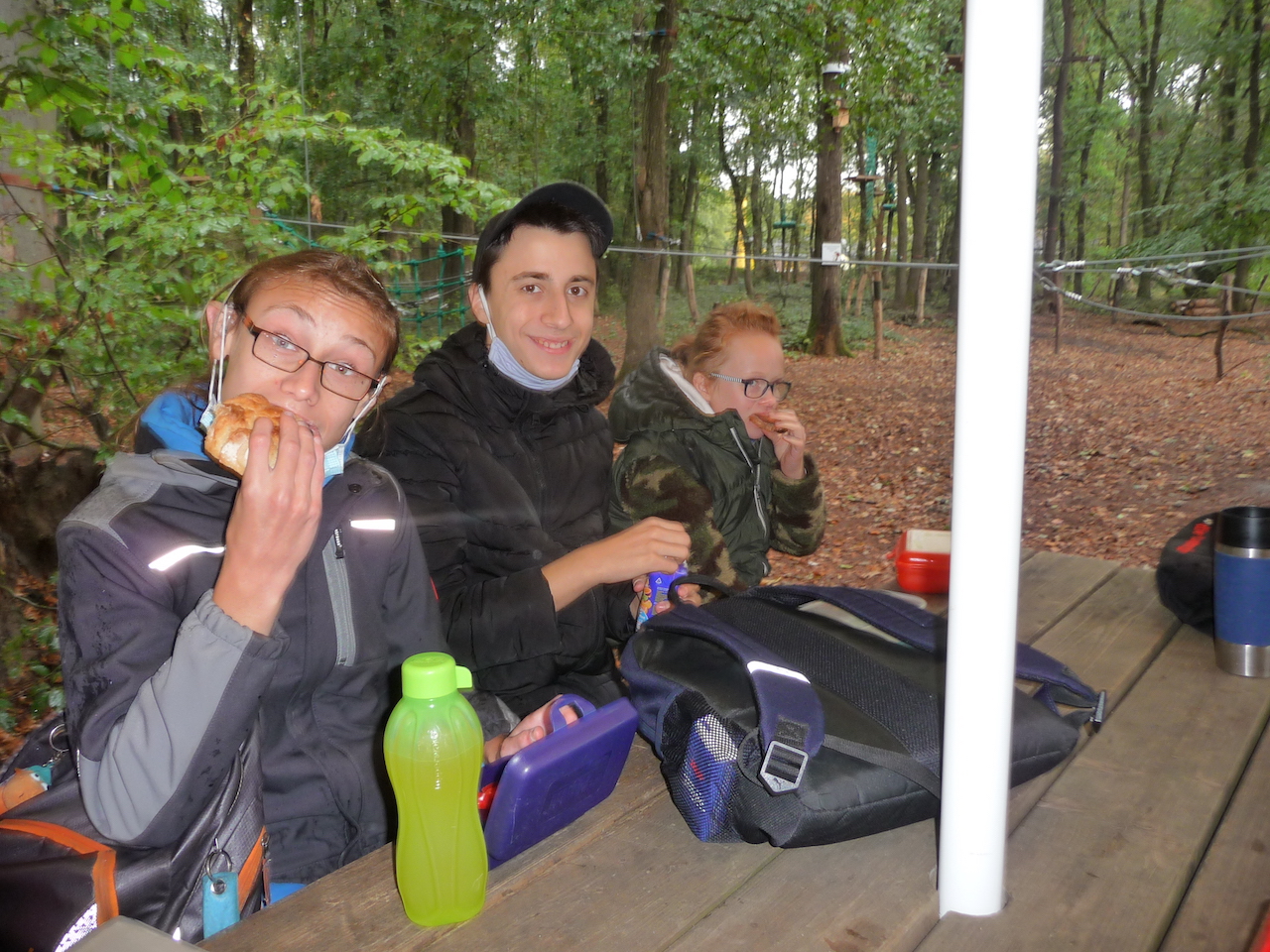 Am 5. Oktober sind wir mit Franz und Franzi nach Hinsbeck gefahren. Als wir ankamen, hat es geregnet. Beim Kletterwald konnten wir unter großen Schirmen sitzen und frühstücken. Dann haben wir überlegt, ob wir zurück zur Schule fahren, doch dann hat es aufgehört zu regnen und wir sind doch noch durch den Wald zum Aussichtsturm gewandert. Als wir zurück zum Kletterwald kamen, haben wir auf die Pizza gewartet, die zu spät kam. Herr Wagner hat bei der Pizzeria angerufen und dann kam die Pizza. Die war richtig lecker. Dann sind wir zurück zur Schule gefahren mit den Franzmobilen. (geschrieben von L. und D.)